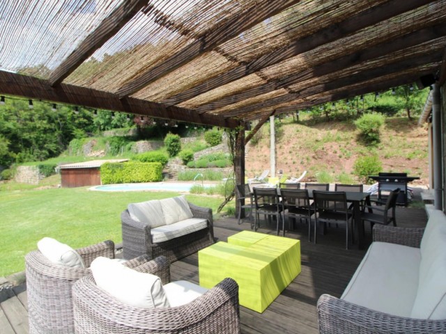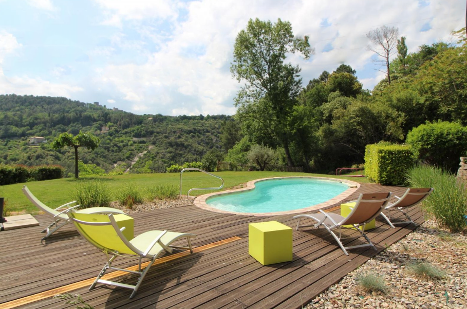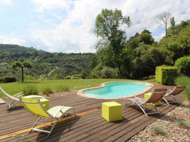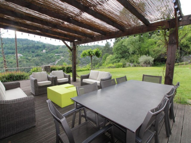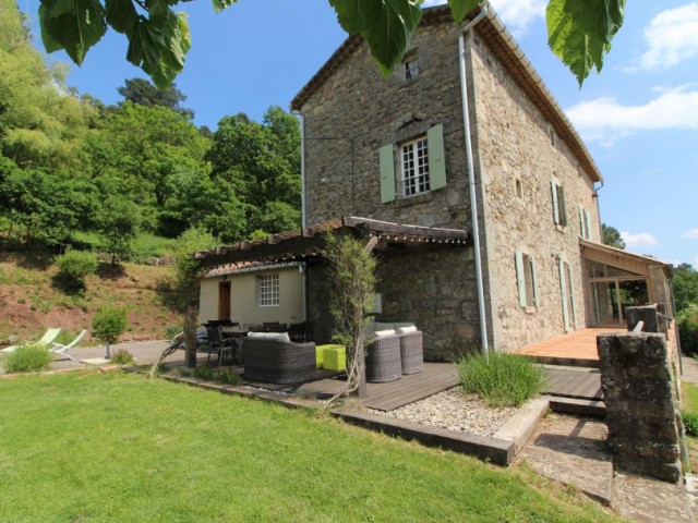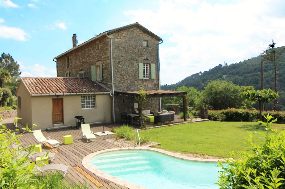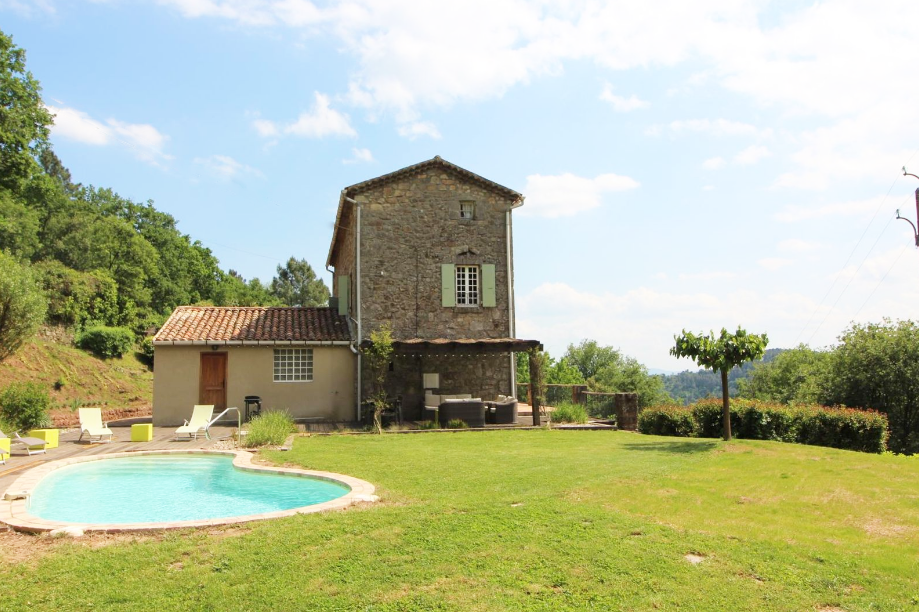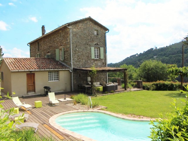 Avec une situation idéale proche de deux villages de caractère avec toutes les commodités, cette maison traditionnelle du 19ème siècle a été rénovée avec soin. Le terrain en terrasses, plat autour de la piscine de 9 m x 4 m chauffée, avec une plage en bois et une pergola, jouit de la vue magnifique sur les collines boisées et le massif du Tanargue en arrière-plan.