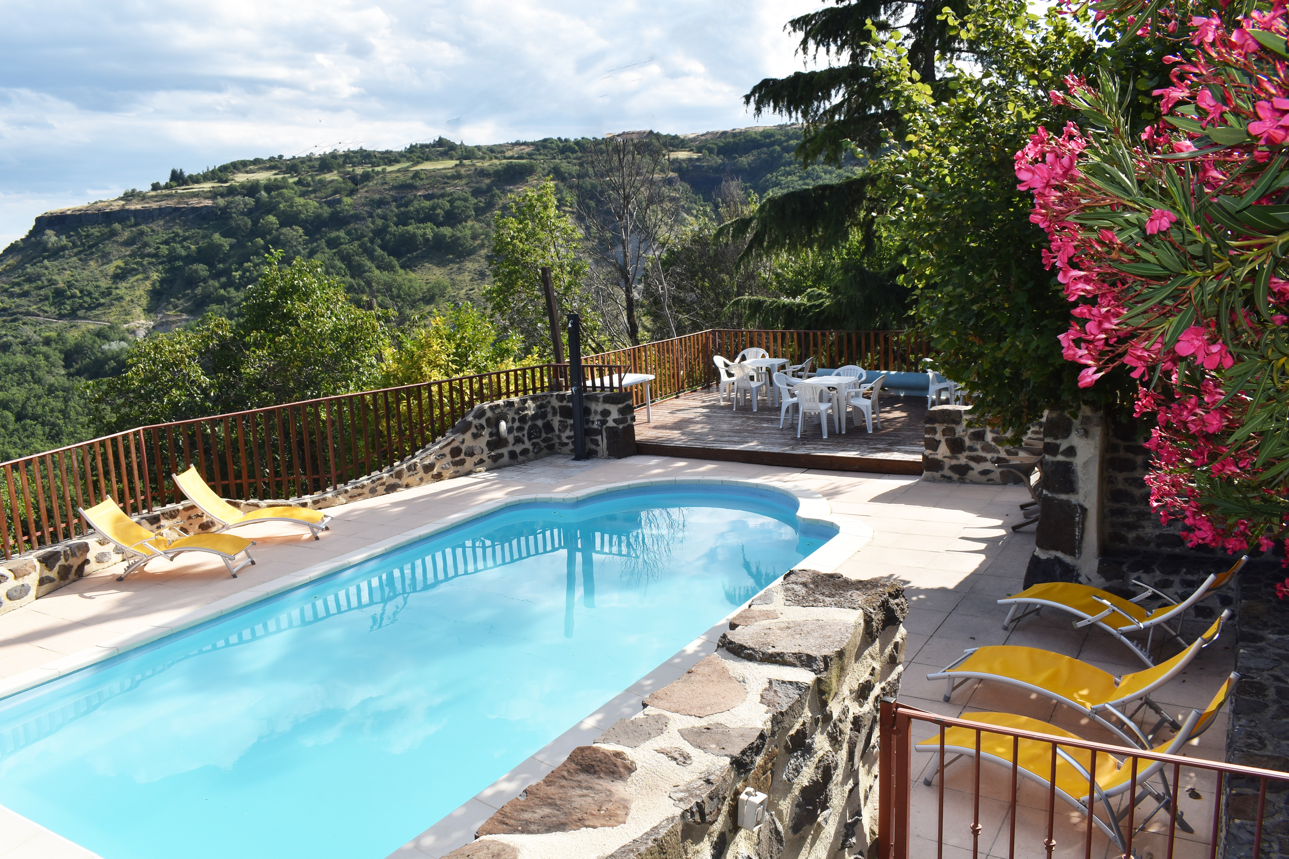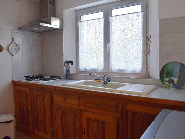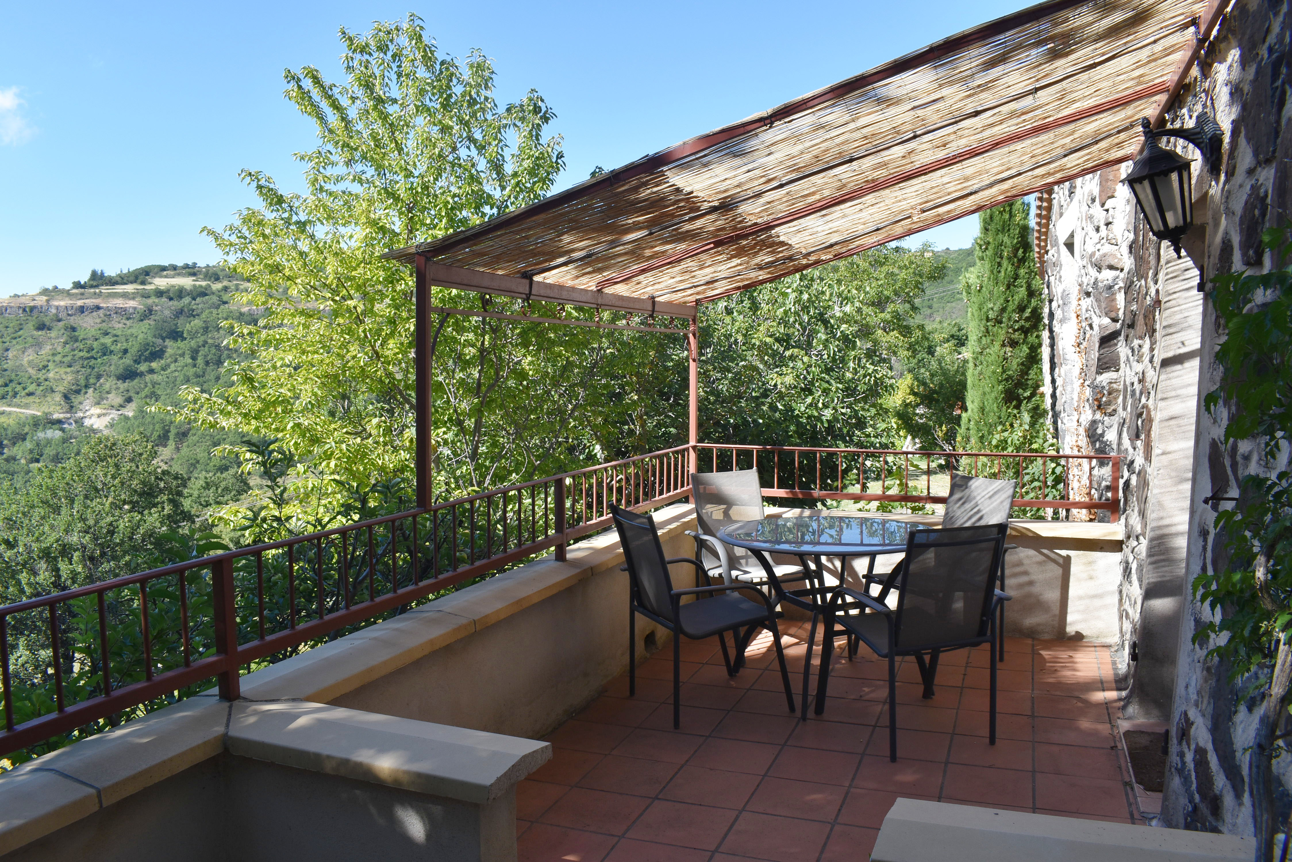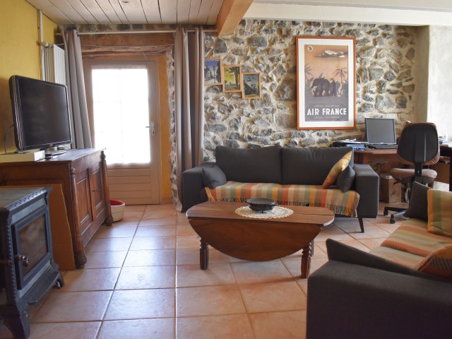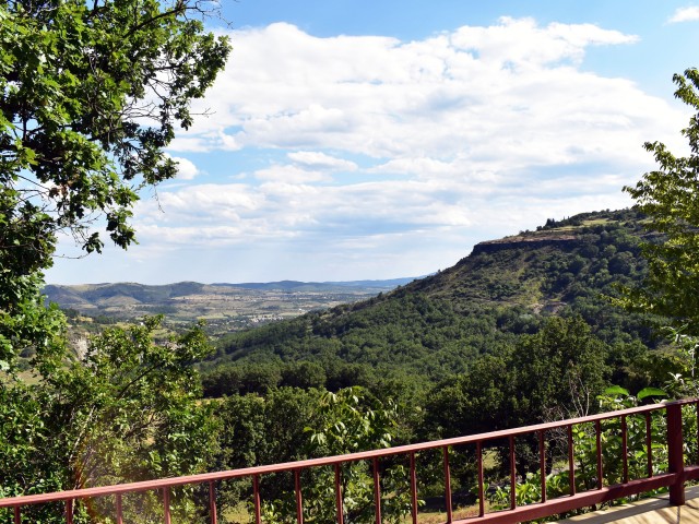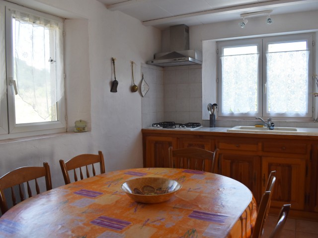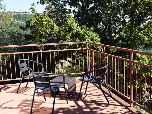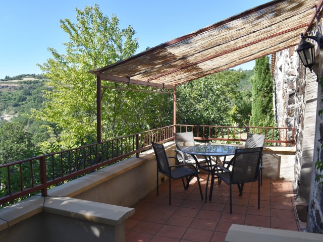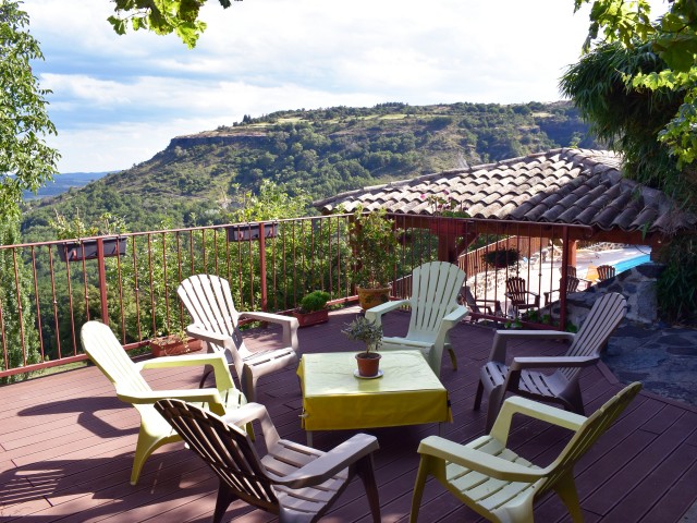 Cette demeure de charme, ancienne propriété rurale entièrement rénovée, offre un point de vue incroyable sur un paysage de falaises rocheuses entre lesquelles de douces collines ondoient jusqu'à l'horizon. Longeant la piscine en contre-bas avec sa grande terrasse couverte et passant par une large terrasse "belvédère", le premier logement de 121 m2 (avec chauffage central) s'ouvre sur une salle à manger de 34 m2 avec un coin-cuisine et un cellier de 5,85 m2 en annexe. Cette pièce communique avec le salon de 28,80 m2 agrémenté d'un poêle à bois et permet de rejoindre un patio. Au même niveau, se situe une chambre de 10,75 m2 et par un dégagement, une salle d'eau de 4,62 m2 et un W.C. de 2,65 m2 ainsi que la chaufferie (2 chaudières bois et fuel).