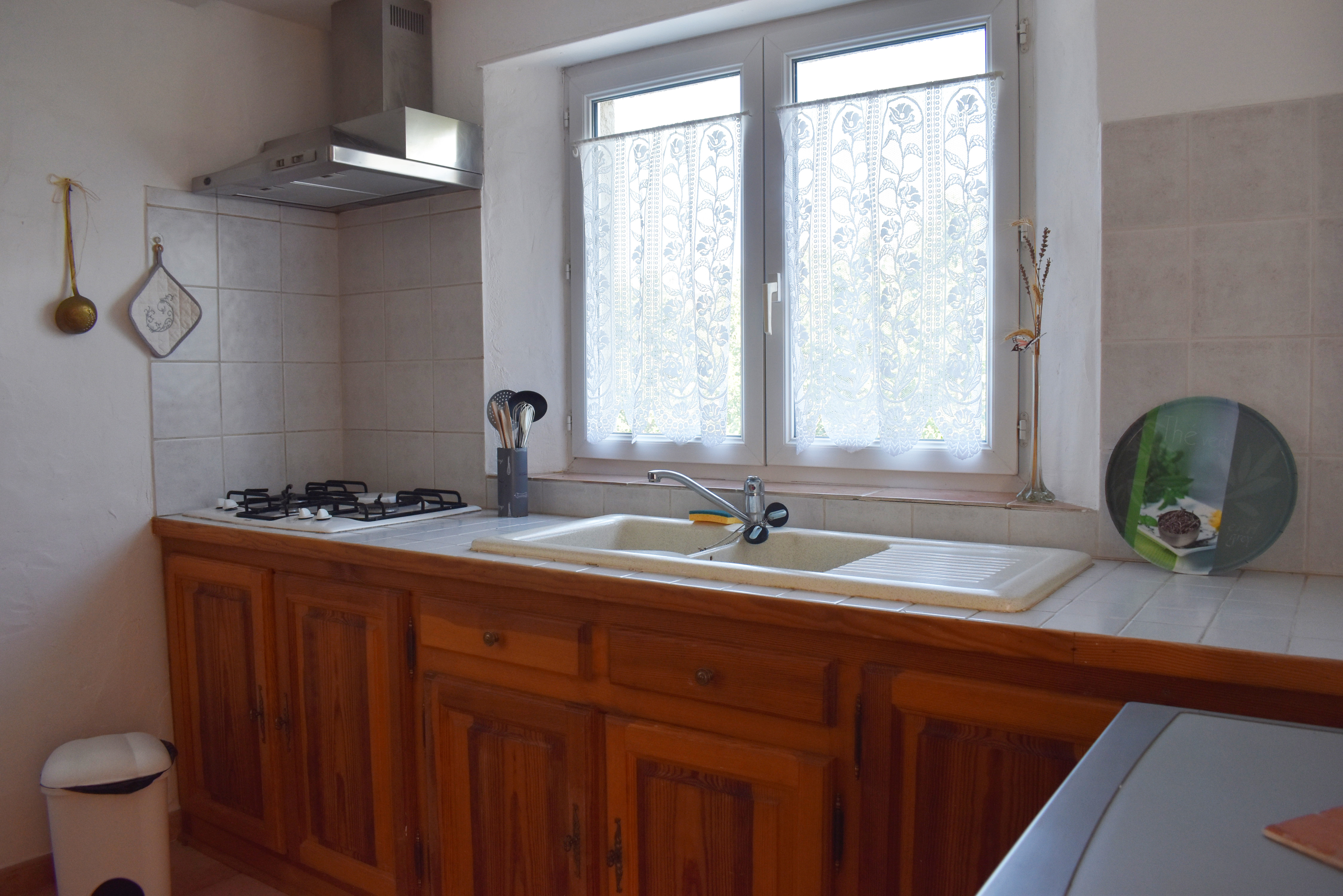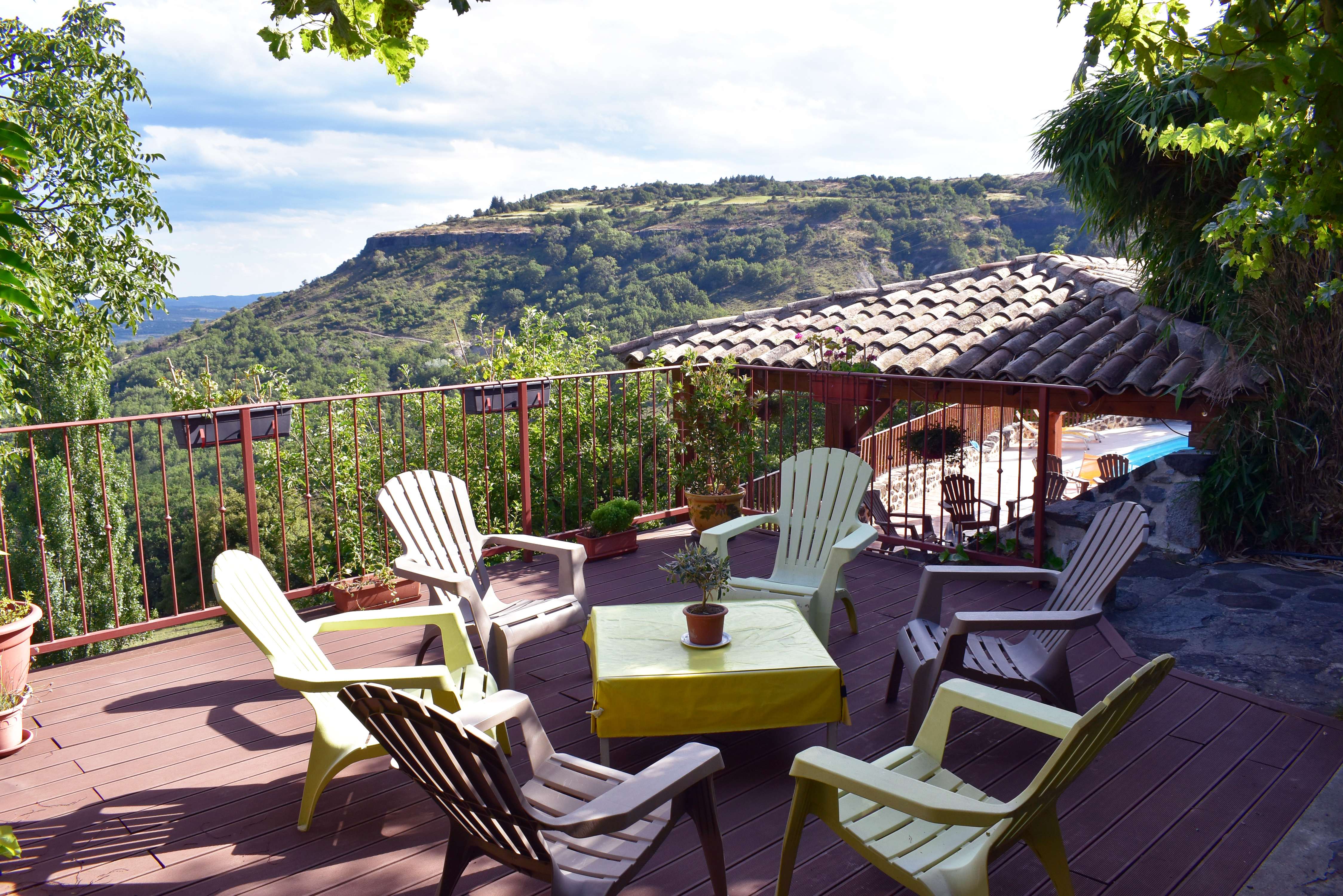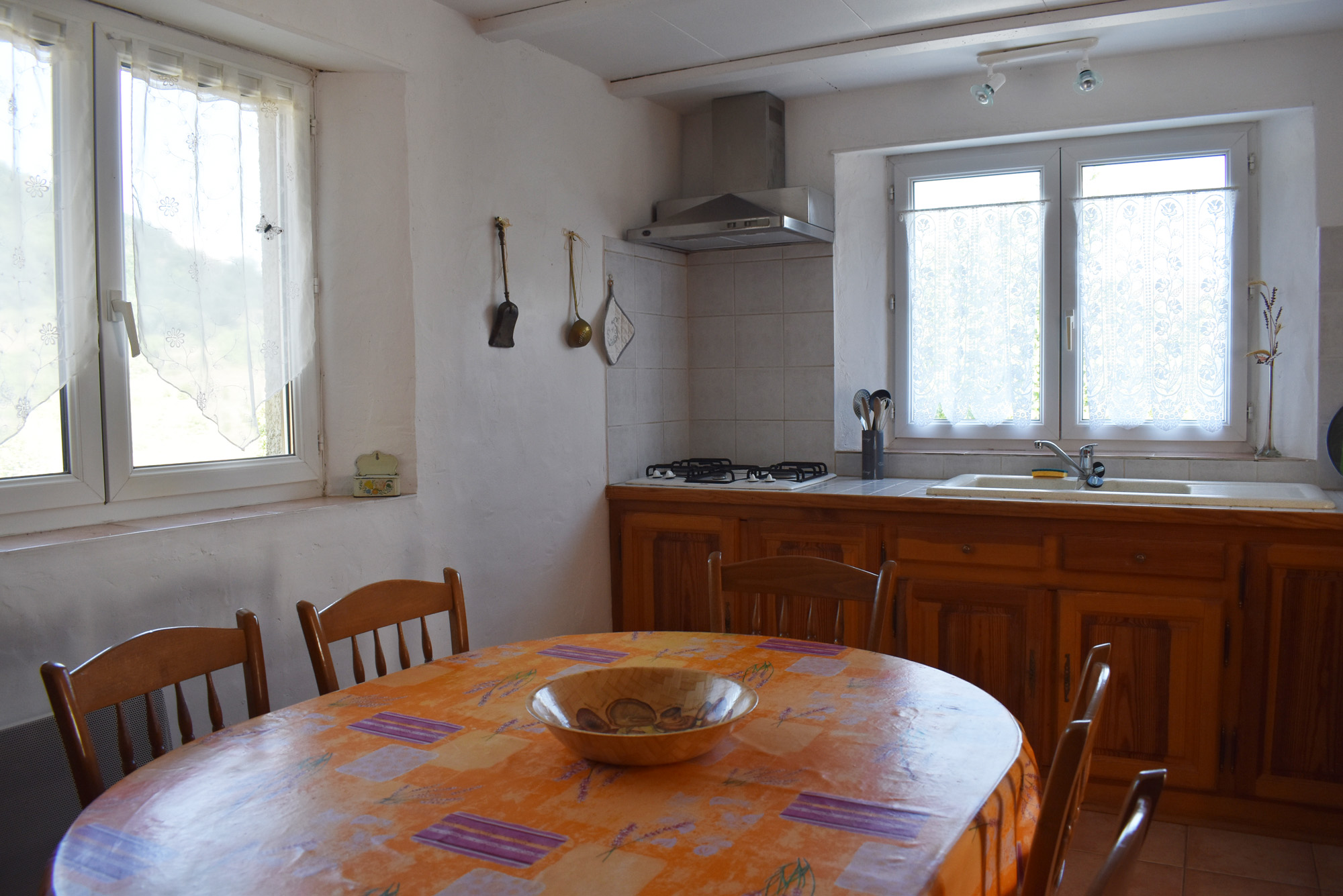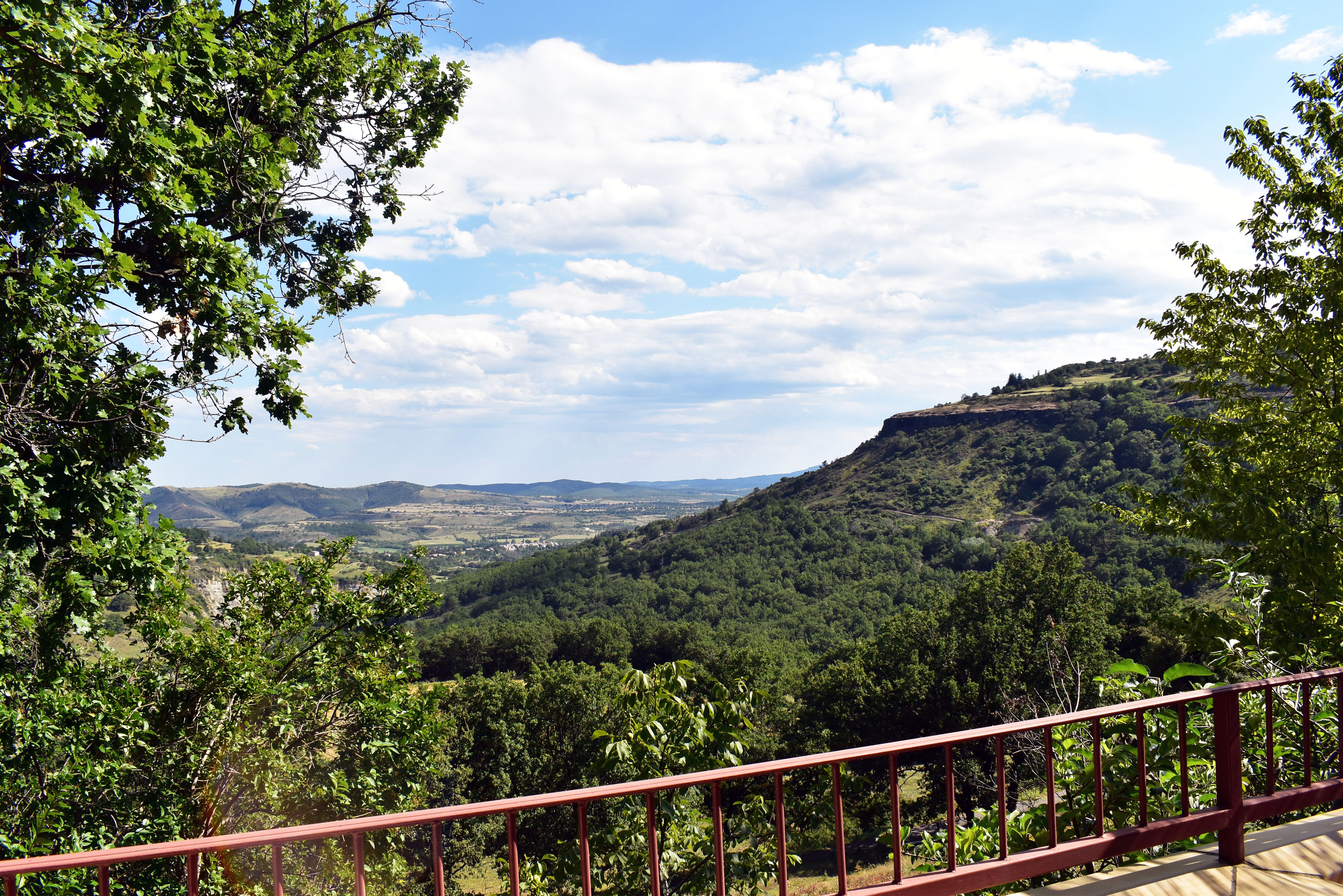 Cette demeure de charme, ancienne propriété rurale entièrement rénovée, offre un point de vue incroyable sur un paysage de falaises rocheuses entre lesquelles de douces collines ondoient jusqu'à l'horizon. Longeant la piscine en contre-bas avec sa grande terrasse couverte et passant par une large terrasse "belvédère", le premier logement de 121 m2 (avec chauffage central) s'ouvre sur une salle à manger de 34 m2 avec un coin-cuisine et un cellier de 5,85 m2 en annexe. Cette pièce communique avec le salon de 28,80 m2 agrémenté d'un poêle à bois et permet de rejoindre un patio. Au même niveau, se situe une chambre de 10,75 m2 et par un dégagement, une salle d'eau de 4,62 m2 et un W.C. de 2,65 m2 ainsi que la chaufferie (2 chaudières bois et fuel).