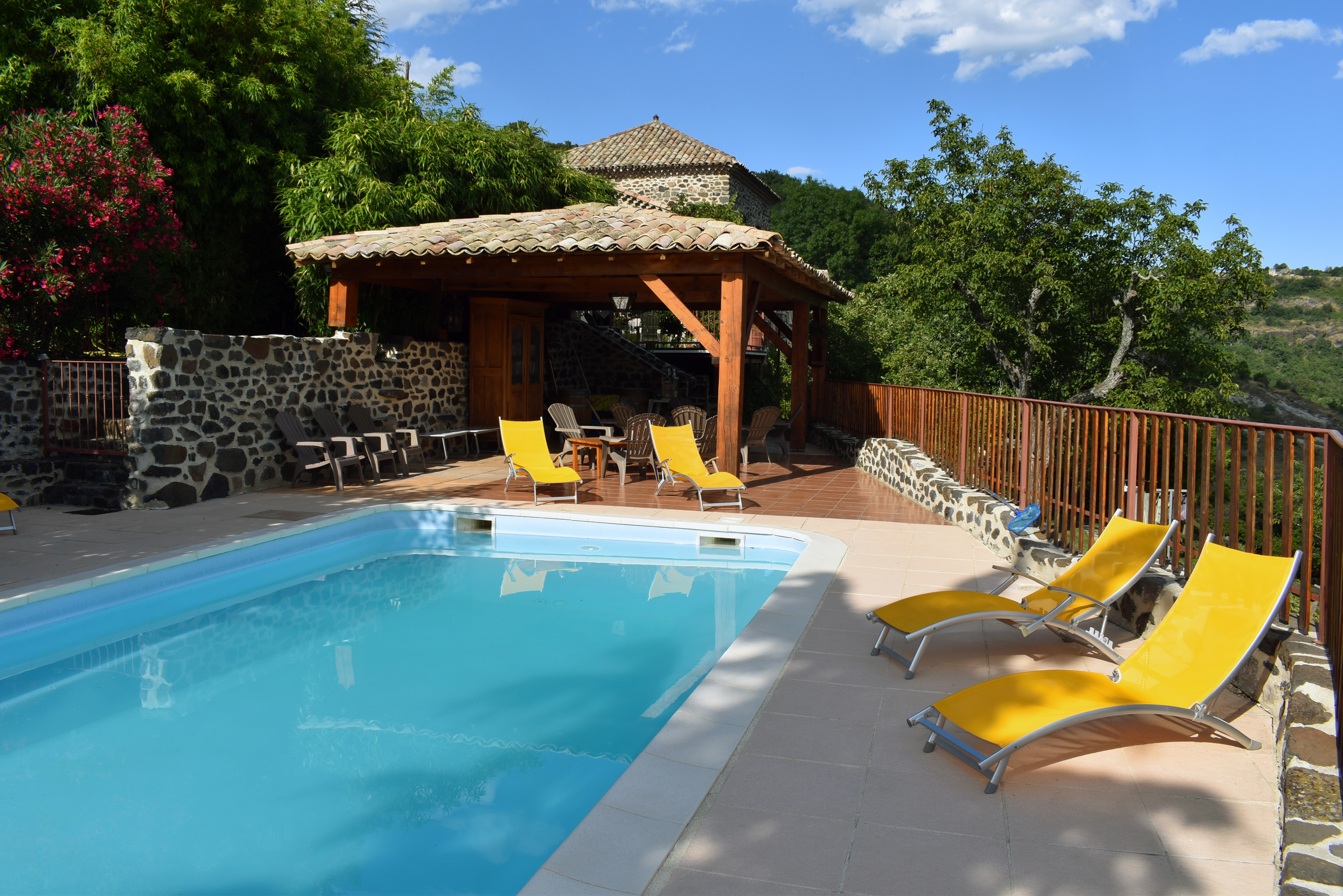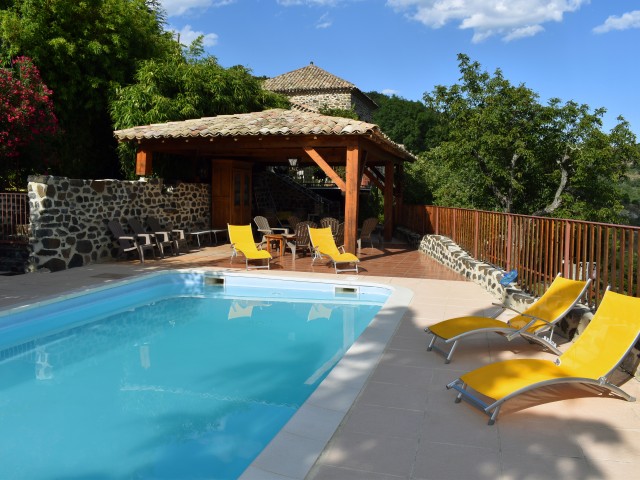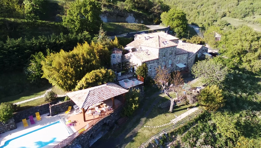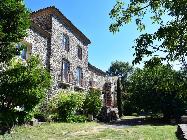 SUD ARDECHE : à 35 minutes de Montélimar et d'Aubenas, une ancienne propriété rurale rénovée avec une vue splendide sur un paysage préservé, dominant 5,3 ha de terrain en prés et bois. Elle se compose de plusieurs bâtiments en pierre, d'une tour, d'un patio et d'une piscine de 8 x 4 m avec terrasse couverte. Environ 562 m2 de surface habitable (capacité d'accueil totale de 38 personnes) et comprend : un habitation principale avec 4 logements et terrasses, une maison indépendante avec terrasse, une salle de réception, une cuisine professionnelle, un espace buanderie-lingerie, 3 caves et un abri- véhicules. Chauffage central (bois et au fuel) et poêle à bois, chauffage électrique pour la maison indépendante avec poêle à bois. Eau de Ville et eau de source. 3 Fosses septiques. Parkings.