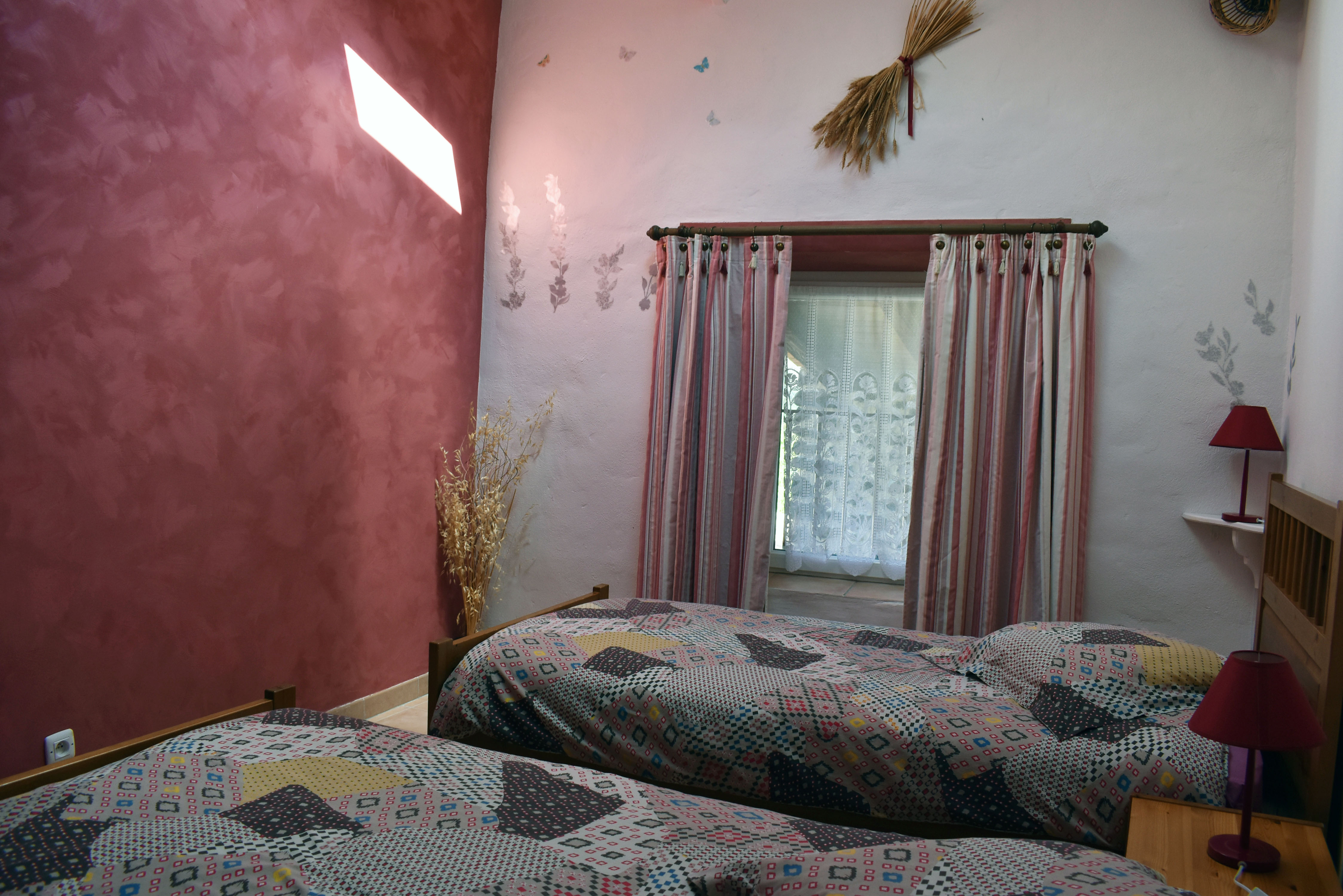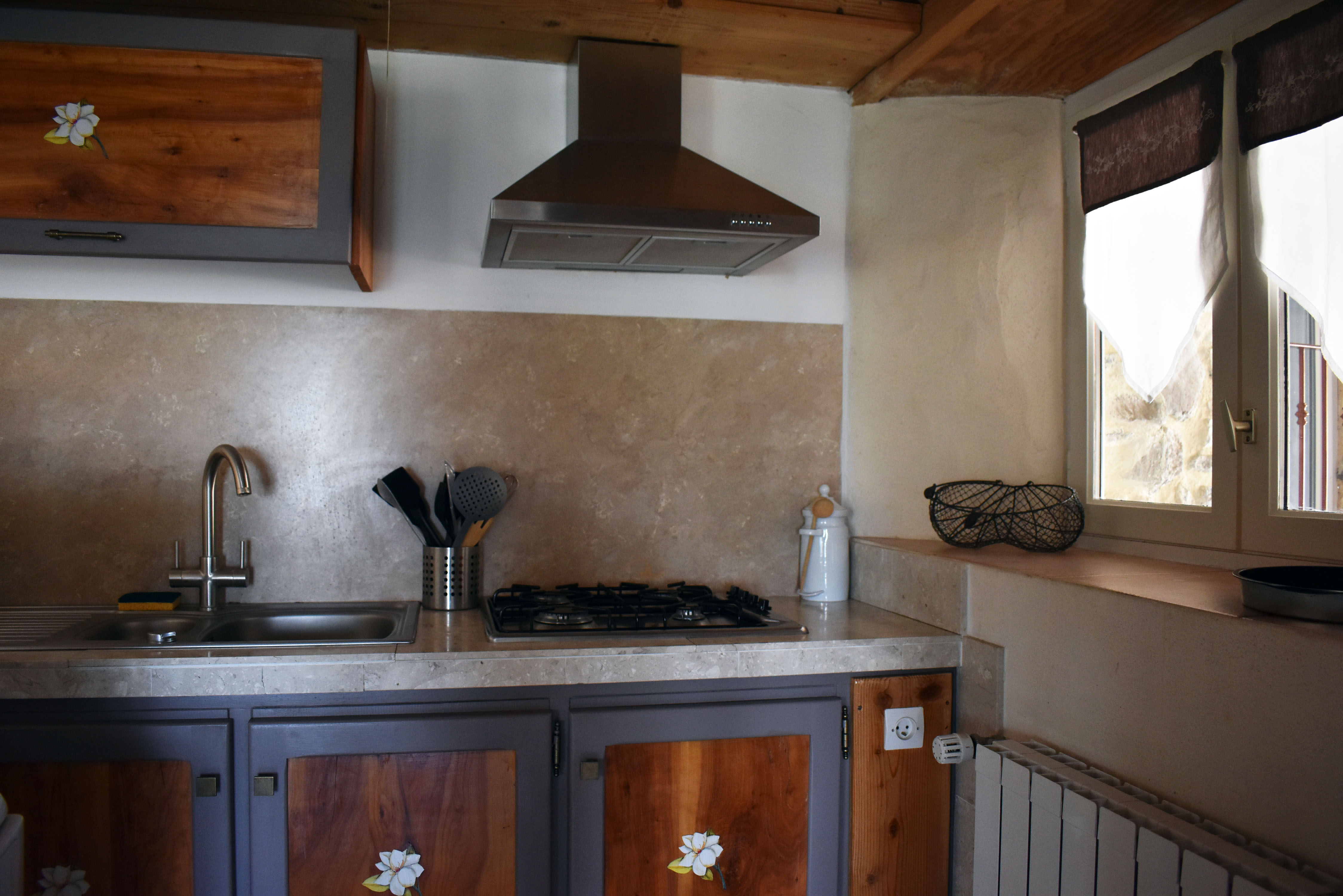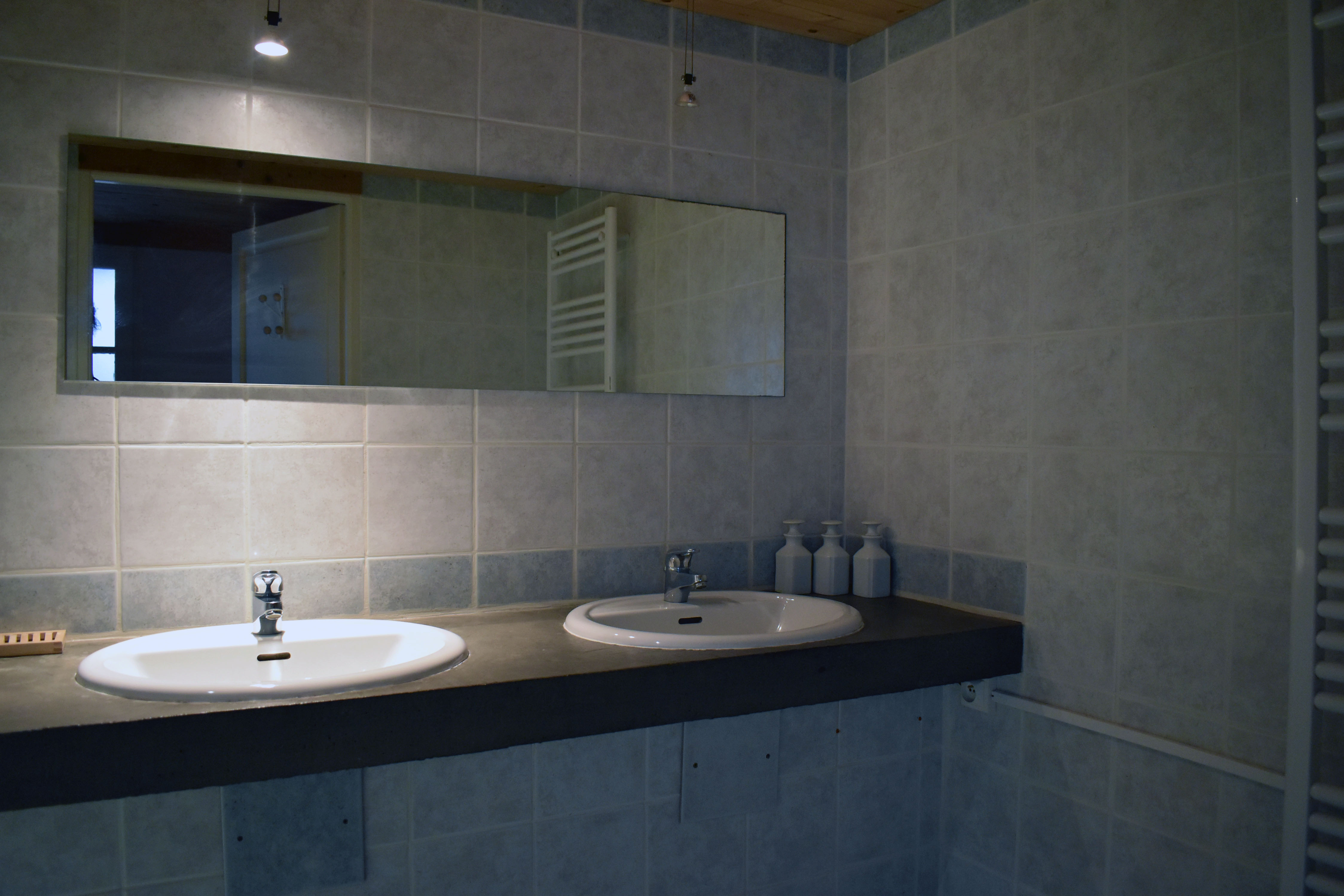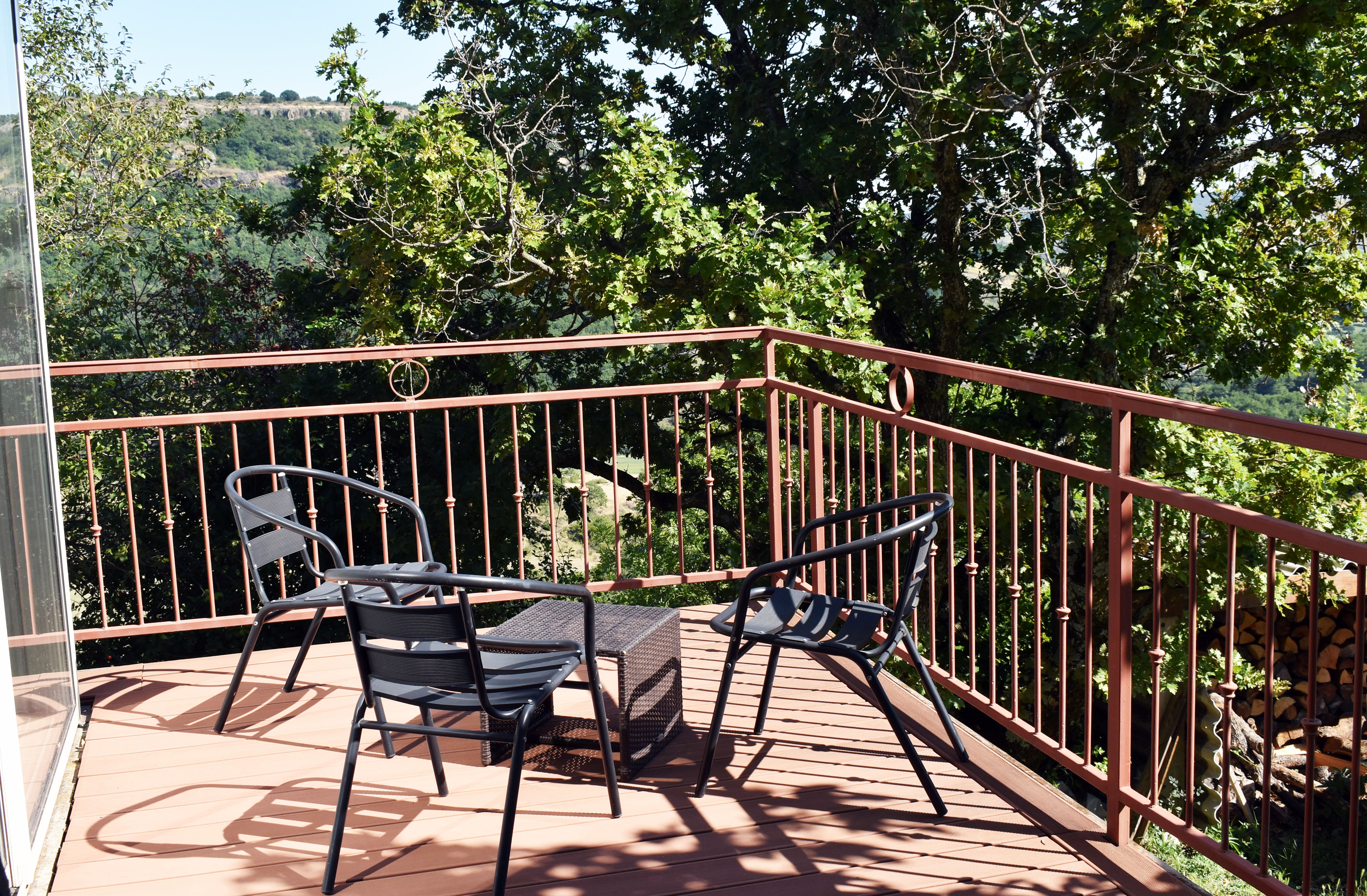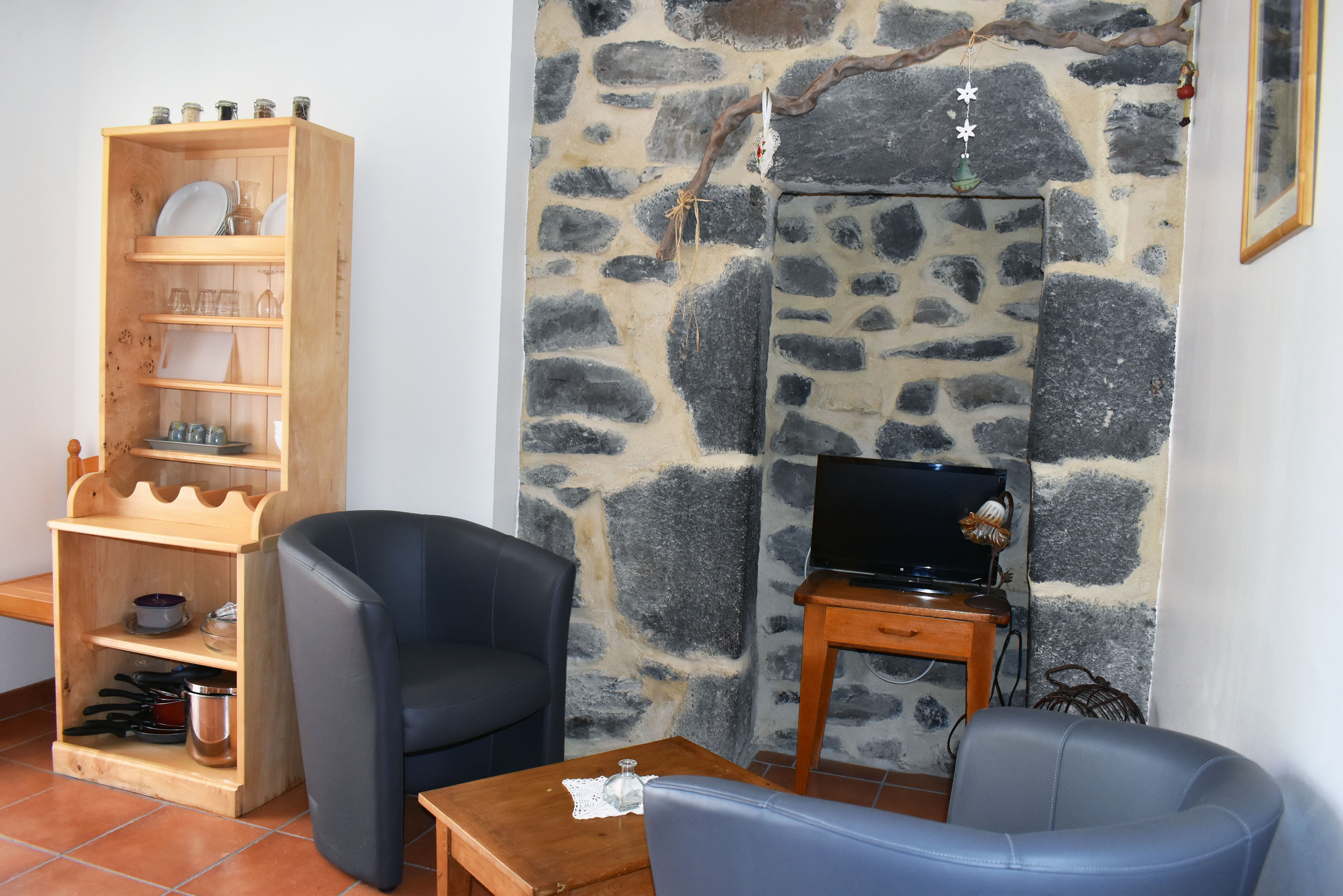 De la salle de réception, un escalier rejoint au premier niveau un troisième logement de 86 m2 (avec chauffage central) et une pièce privée de rangement (convertible en salle d'activité ou chambres). Il se compose en duplex de 2 chambres de 11,50 m2 et 12 m2, la dernière avec un lavabo et d'une salle d'eau de 4,40 m2 et d'un W.C. séparé et au rez-de-chaussée supérieur, d'un séjour avec coin-cuisine de 27,60 m2 avec une sortie vers une terrasse. Une petite pièce au rez-de-chaussée inférieur permet de communiquer (si nécessaire) avec le quatrième logement de 102 m2 (avec chauffage central), vers le hall d'entrée de celui-ci qui s'ouvre sur un dégagement distribuant une salle de bains (baignoire) de 6 m2 et un W.C. séparé avec lave-mains et plus loin une grande pièce de vie de 32,50 m2 avec la vue sur les montagnes, équipée d'un coin cuisine. Au même niveau se situe une chambre de 19 m2 avec un lavabo. A ce niveau une porte permet de rejoindre une terrasse et une petite tour ronde qui accueille une chambre supplémentaire. A l'étage, par un escalier en bois, nous accédons à une très belle chambre de 37 m2 avec la charpente arpente.