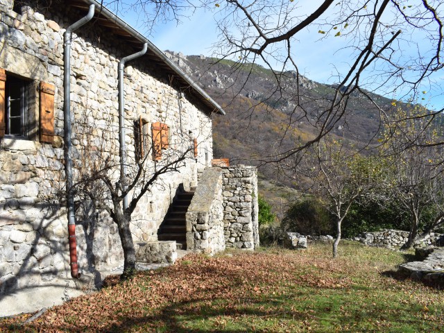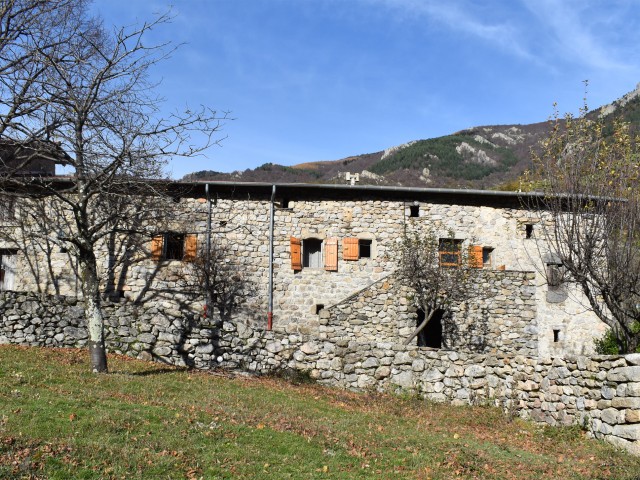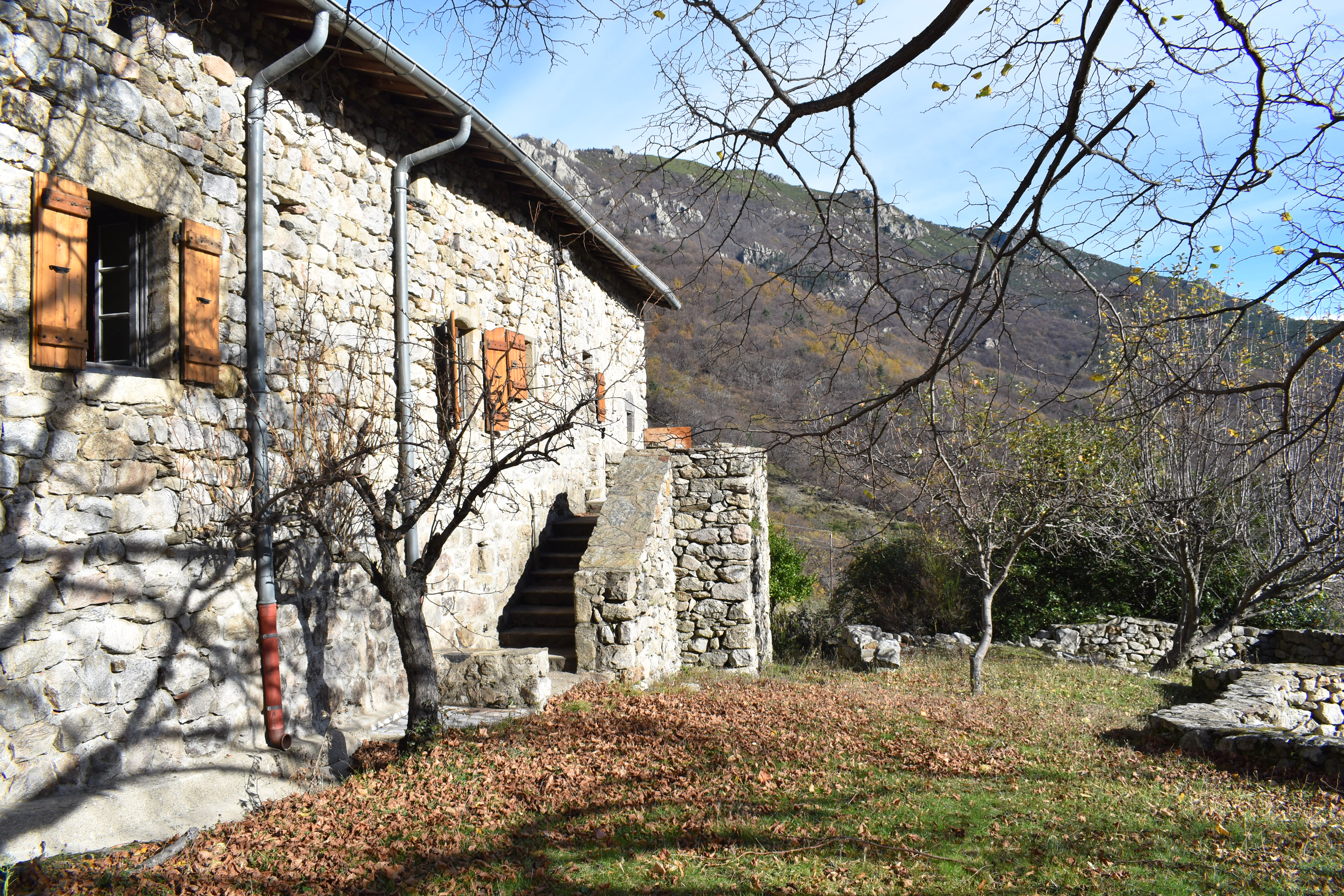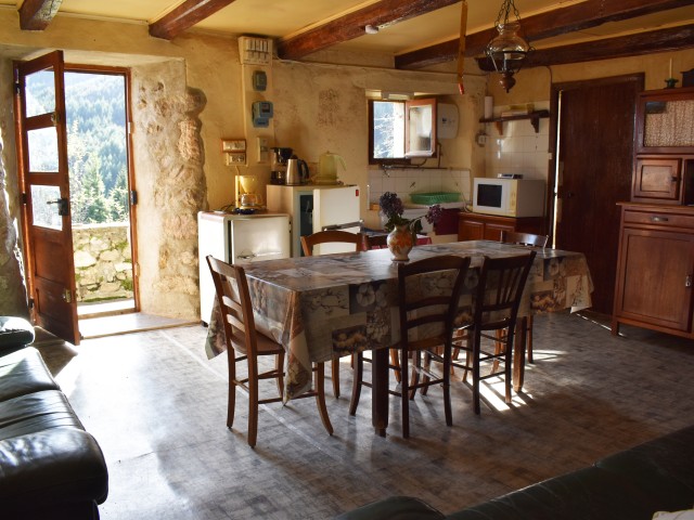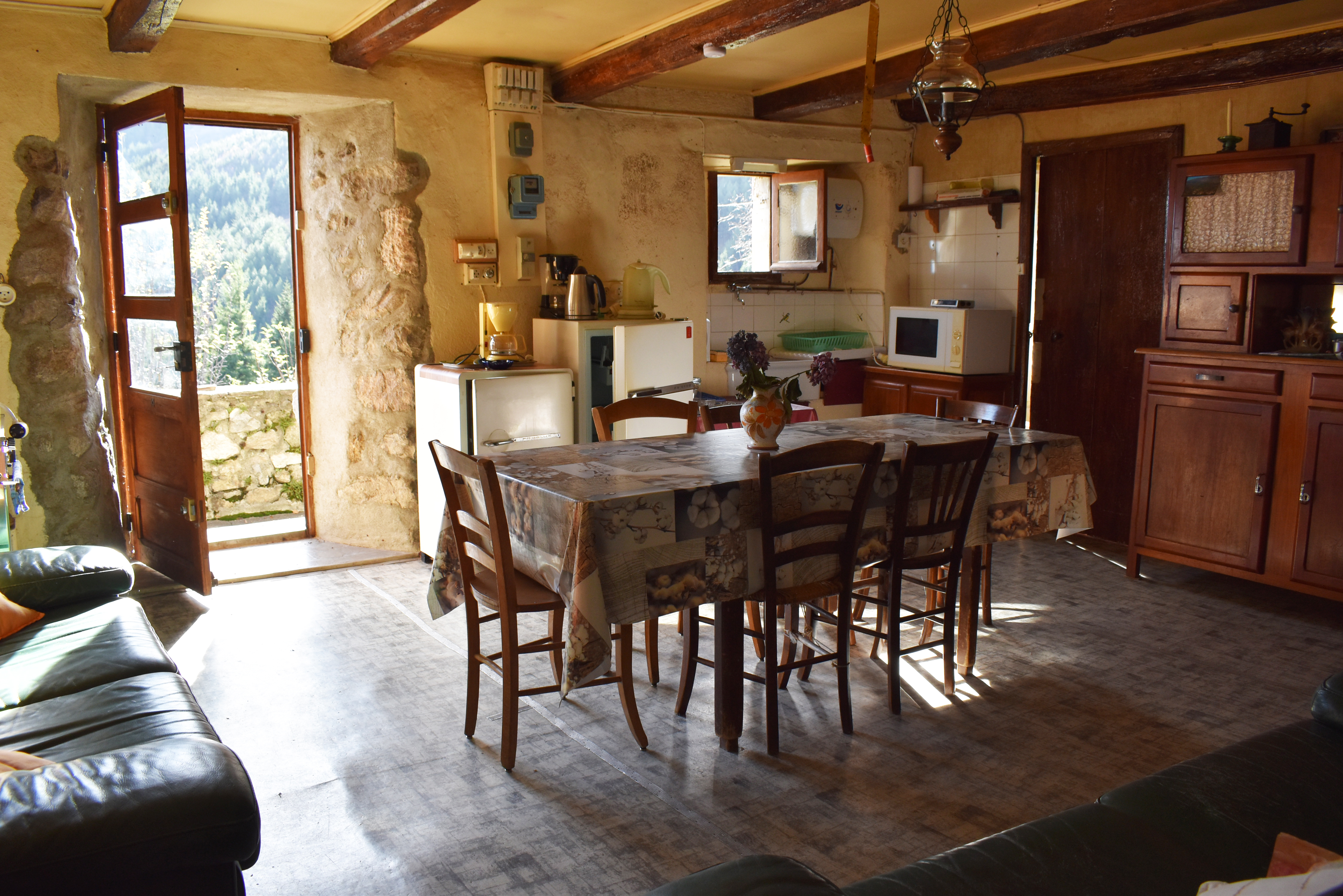 Cette maison ancienne rénovée dans les années 70 et 90 pour la partie sanitaire, se situe en bordure d'un petit hameau au calme dans une vallée où coule une rivière limpide à quelques minutes à pied de la maison. Elle se compose d'une partie principale élevée sur une ancienne étable et une cave. Cette partie habitable est constituée d'une cuisine-salle à manger de 24,24 m2 avec un évier et un poêle à bois. Une porte permet de rejoindre une petite terrasse d'où la vue est magnifique sur la vallée. Un escalier en pierre permet de rejoindre le jardin clos de murs orienté au sud. Ici nous pourrons rejoindre une petite bâtisse mitoyenne de 18 m2 au sol sur 2 niveaux accessible par le jardin.