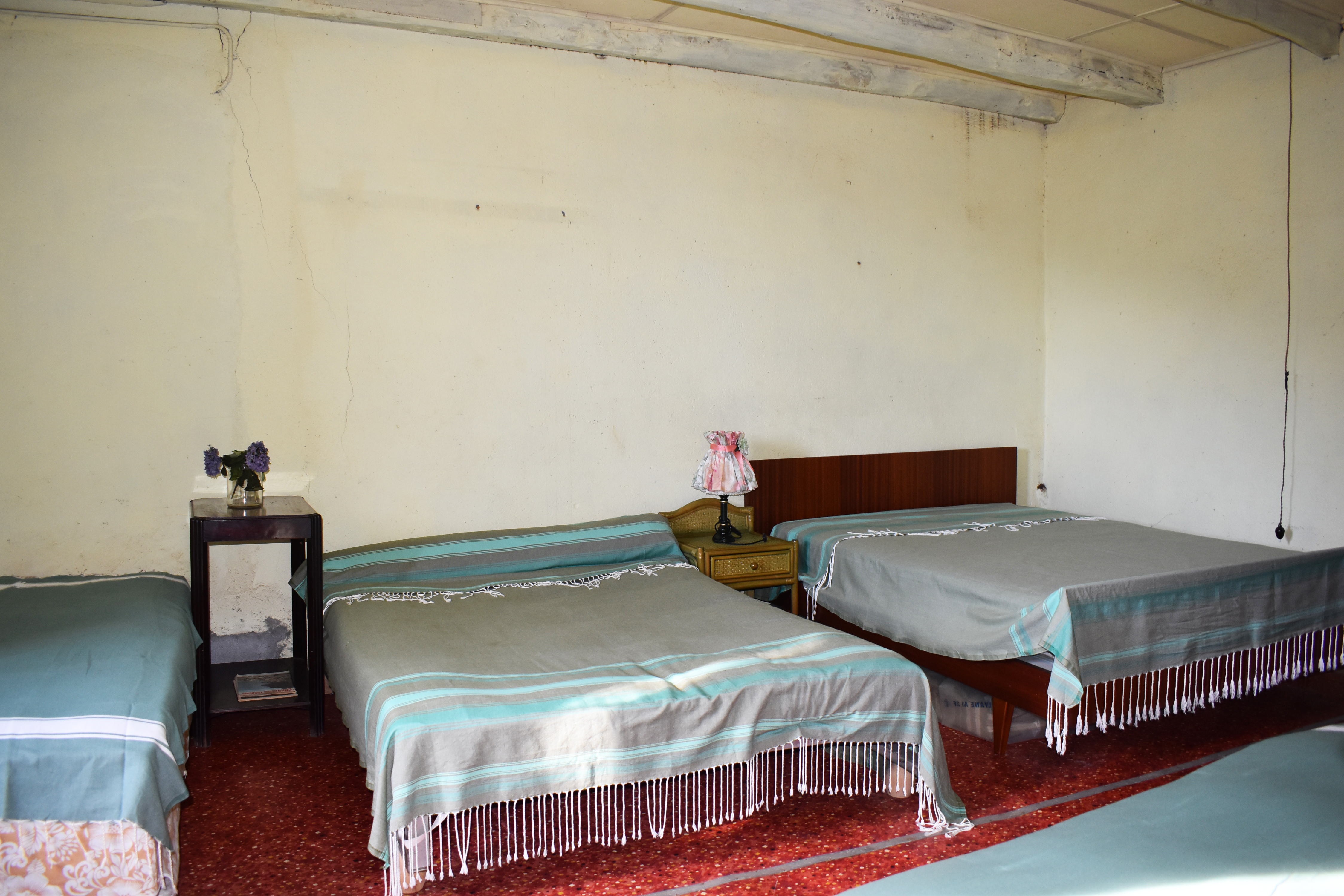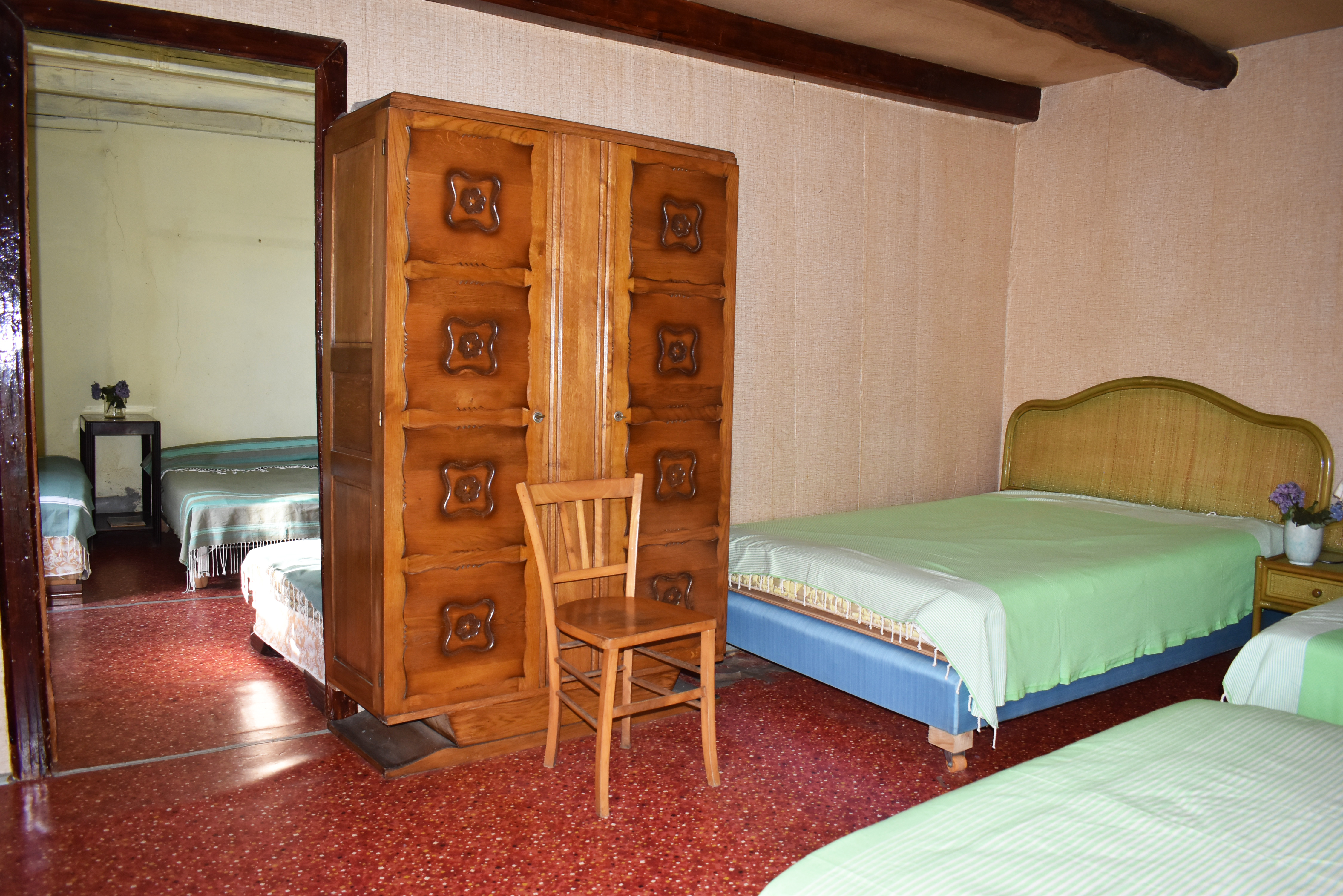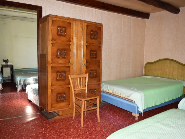 De retour dans la cuisine, nous trouvons deux chambres en enfilade de 18,74 m2 et 19,56 m2. Le sol de ce niveau est constitué d'un vieux plancher en bois recouvert de linoleum.