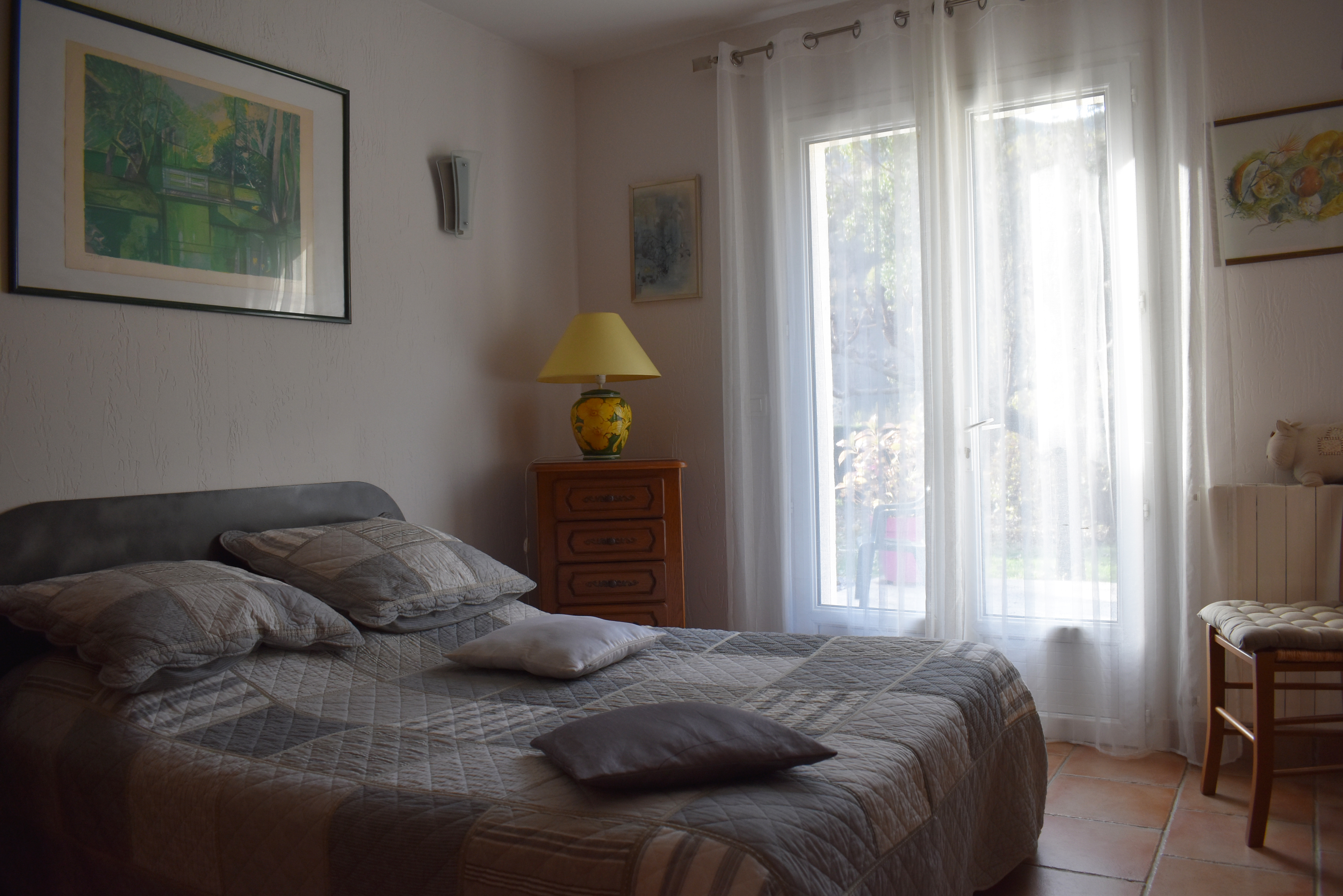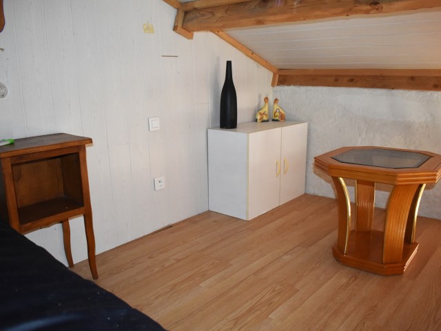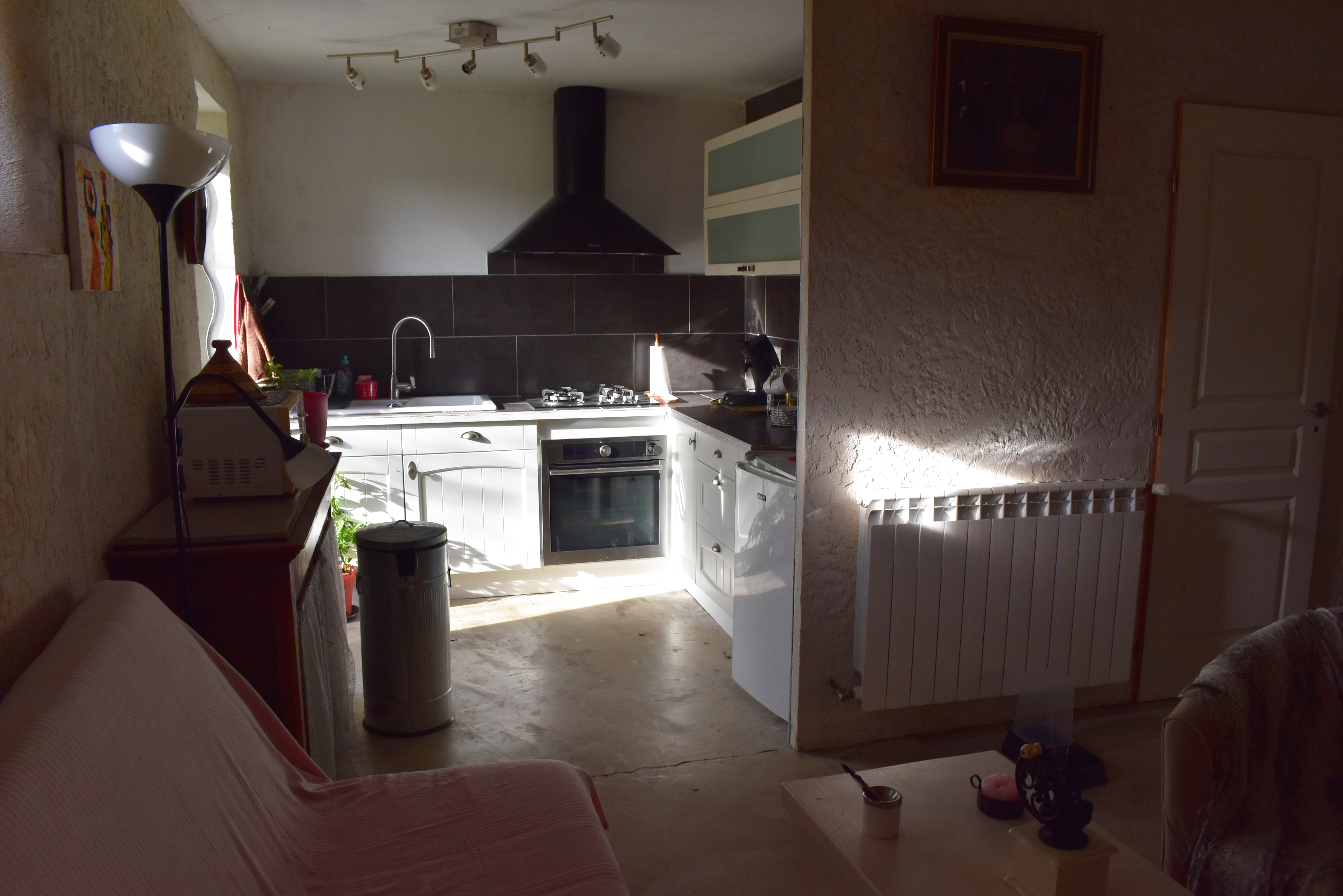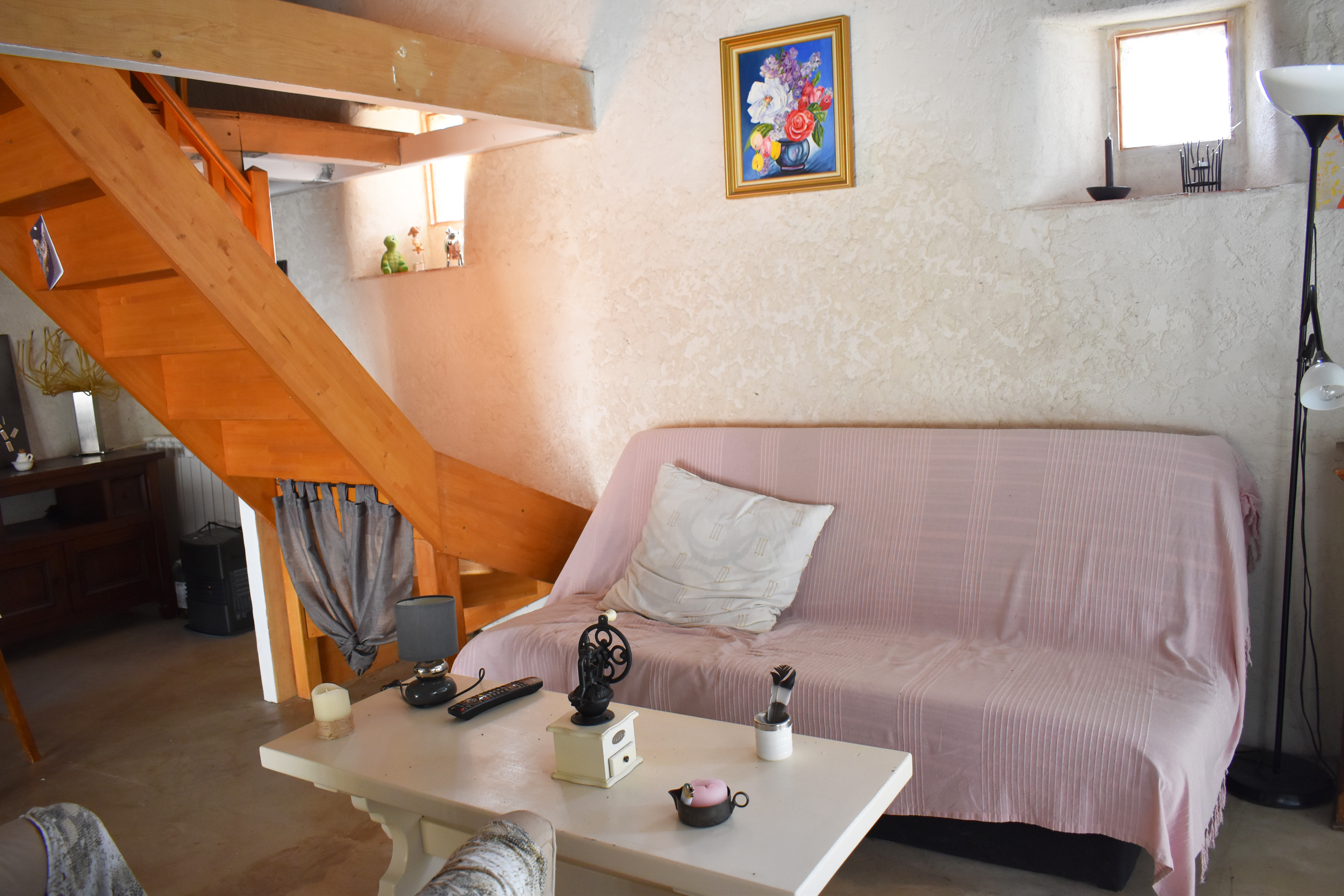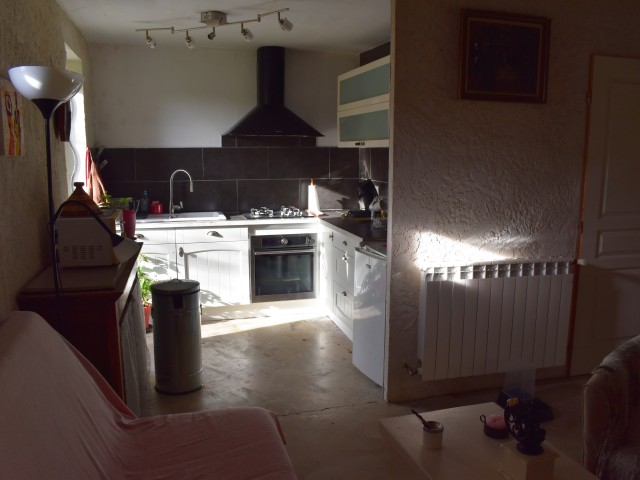 Dans la continuité de la terrasse, une petite grange en pierre élevée sur une cave (avec réservations pour une buanderie), a été rénovée en un studio de 46 m2 avec une terrasse couverte. De plain-pied, la pièce de vie de 33 m2 est prolongée d'un coin cuisine équipée de 6 m2. En annexe se situe une salle d'eau de 4,80 m2 avec un W.C.. Un escalier en bois mène à une mezzanine où se situe la chambre mansardée de 11,90 m2 au sol.