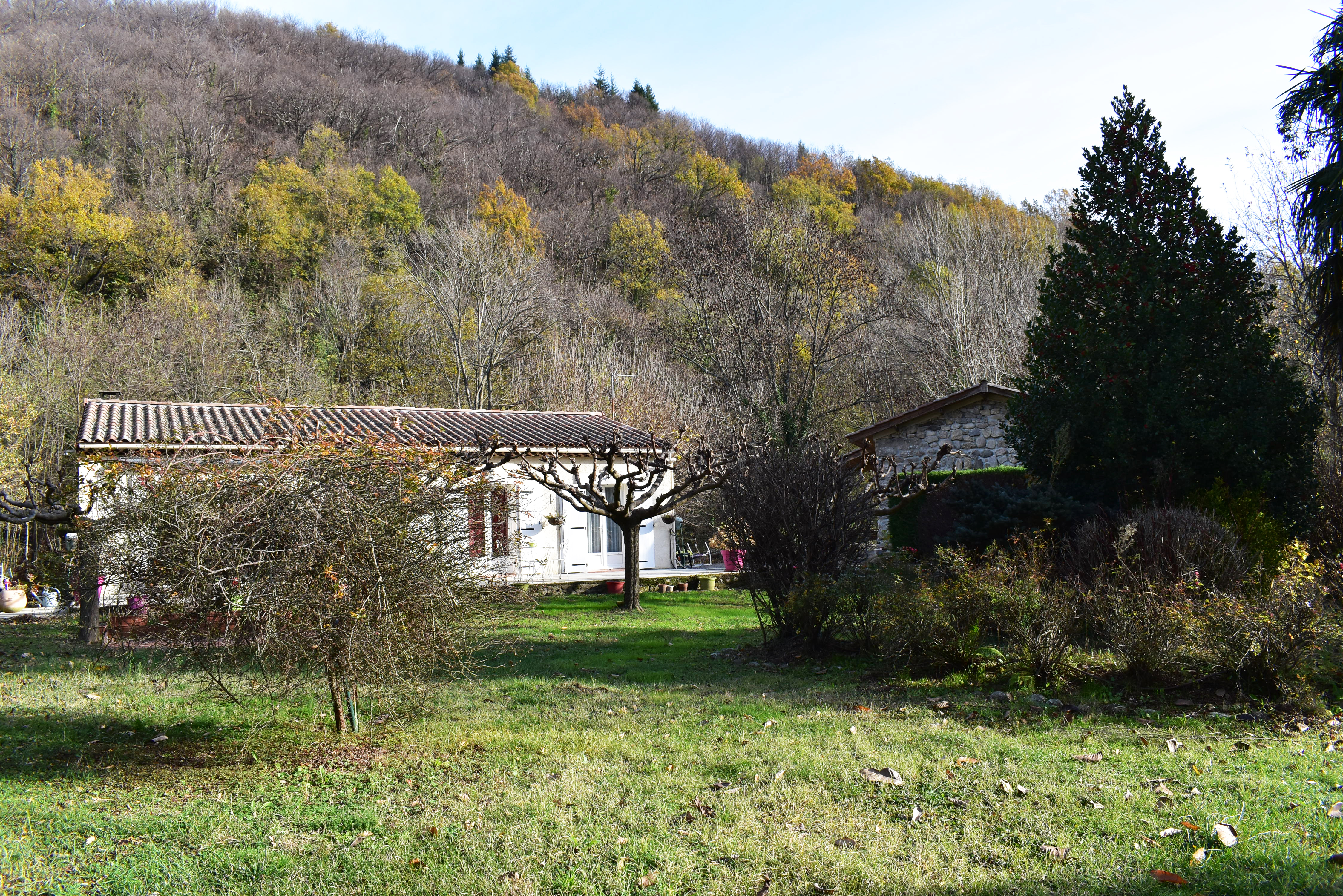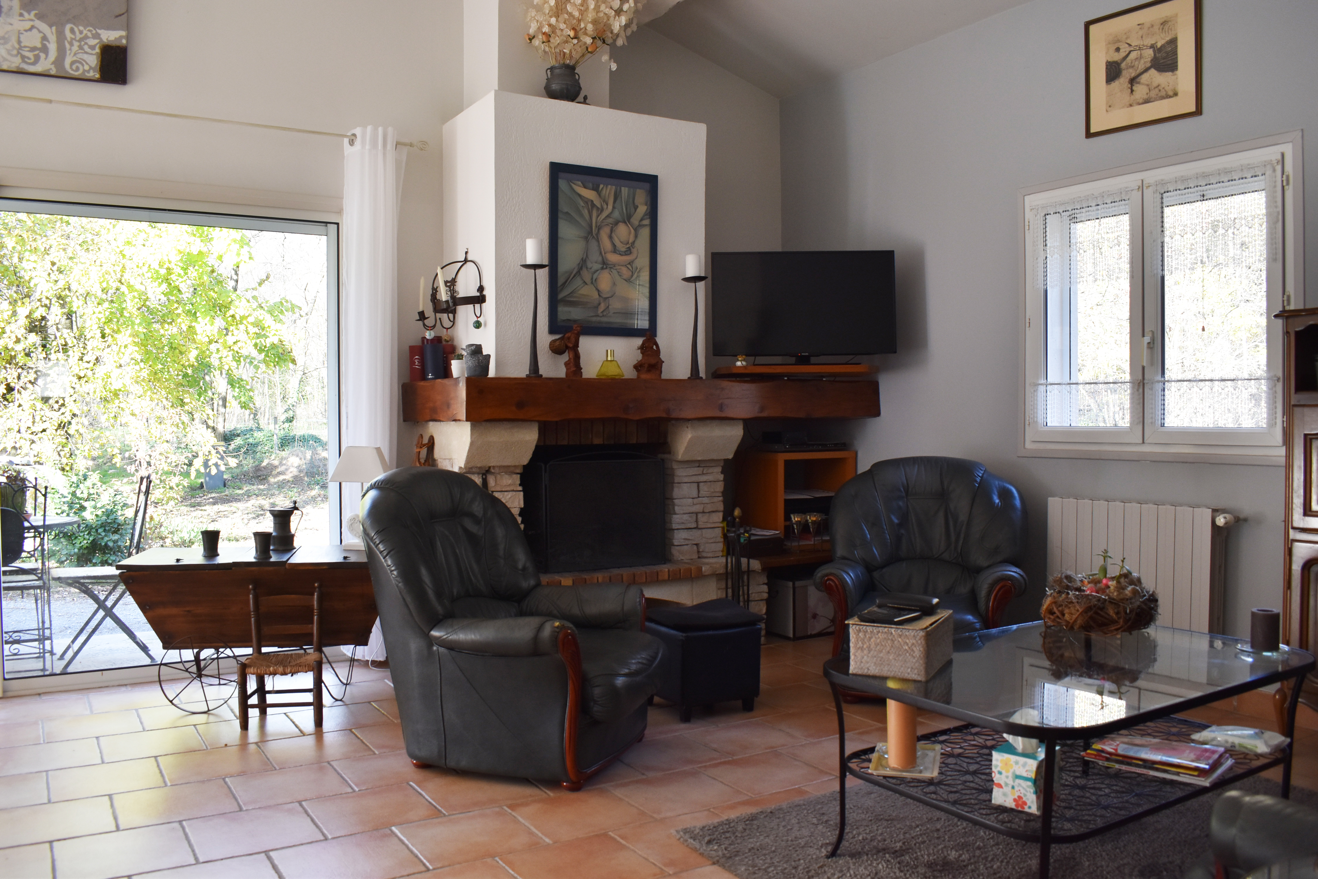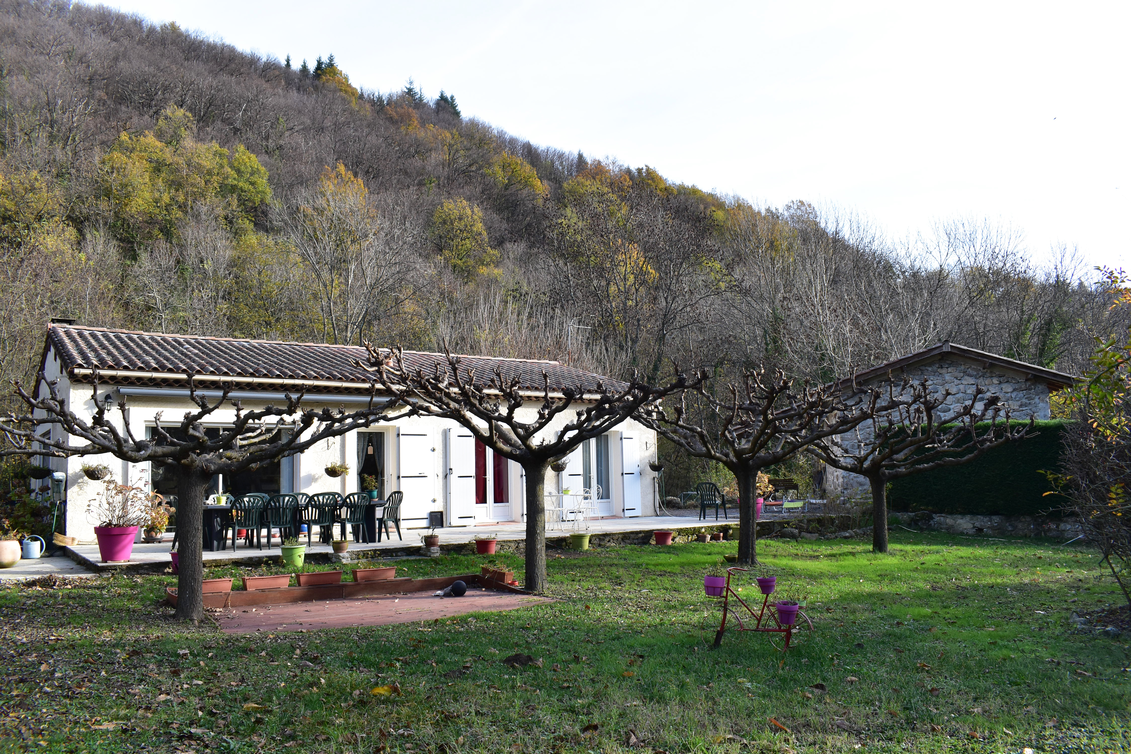 Massif du Tanargue, à 25 minutes de Largentière et de Joyeuse, une villa de plain-pied de 92 m2 habitables et une grange rénovée de 46 m2 avec 2000 m2 de jardin, un garage et un abri véhicules. La maison comprend un salon-salle à manger avec cheminée et cuisine intégrée ouverte, un cellier, 3 chambres, une salle d'eau et un W.C. Terrasse. La grange comprend une pièce de vie avec un coin cuisine équipée, une salle d'eau avec W.C; et une chambre en mezzanine et une cave. Terrasse couverte. Chauffage central au fuel pour les deux logements, tout à l'égout.