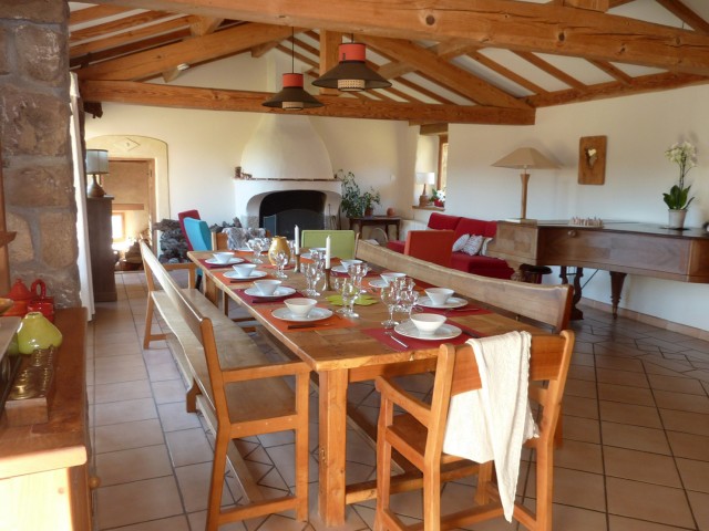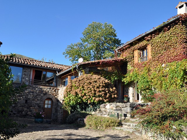 Dans le Parc Régional des Monts d’Ardèche, à 25 minutes d’Aubenas et à moins de 10 minutes d’un village animé avec commerces, une demeure de charme de 264 m2, ancienne ferme rénovée avec possibilité d’un gîte et/ou de chambres d’hôtes, avec 7290 m2 de terrain attenant, 8ha séparé et une vue splendide sur les montagnes à l’horizon. Elle comprend un grand séjour de 53 m2 avec cheminée, ouvert sur une cuisine dinatoire, un salon ouvert sur un coin-cuisine, 7 chambres dont 3 comprenant une salle d’eau, une chambre/studio avec coin-cuisine, un bureau, une salle de bains, une salle d’eau, un W.C. séparé et une dépendance comprenant une chambre et une salle d’eau avec W.C., une grande pièce atelier aménageable, une chaufferie et un bâtiment agricole indépendant. Chauffage central automatique aux copeaux de bois, matériaux d’isolation écologiques, assainissement par phyto-épuration, Internet par ADSL.