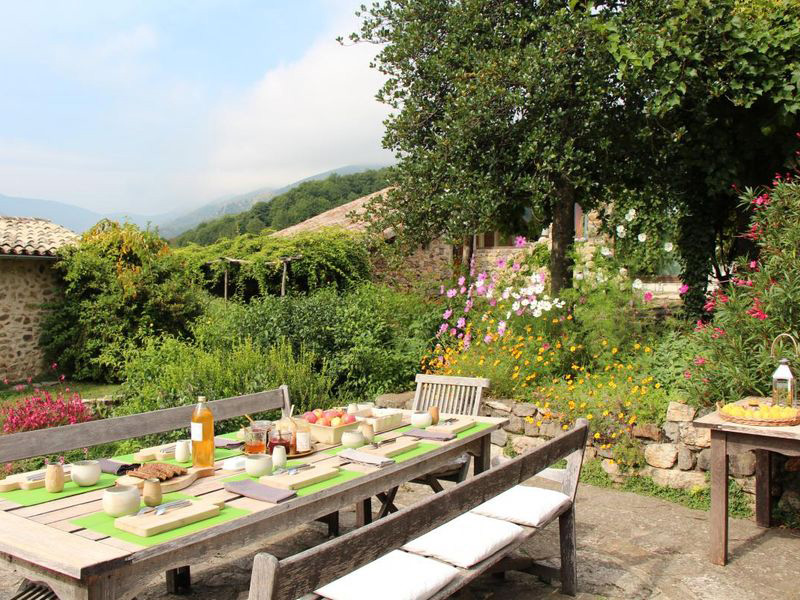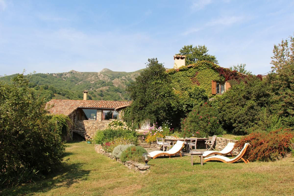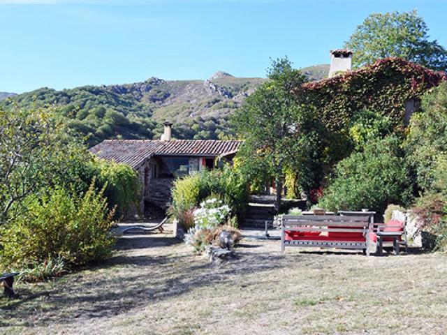 Située dans un environnement privilégié, au calme avec une majestueuse vue sur les montagnes, entourée de 7290 m2 de terrain attenant, cette ancienne demeure rurale a été rénovée avec des Ceints par des terrasses dallées, les bâtiments forment un L et un peu à l’écart un petit bâtiment en pierre (ancienne clède : séchoir à châtaignes) a été rénové au rez-de-chaussée en une chambre de 9 m2 et à l’étage d’une salle de bains de 8,80 m2 avec une salle d’eau avec W.C..