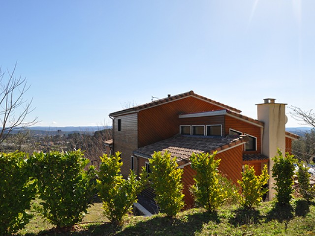 Sur les hauteurs d’un village médiéval pittoresque, cette maison en bois de 150 m2 bénéficie au sud d’une vue dominante sur les Préalpes et Le Ventoux. Construite en 2009 avec des matériaux de qualité, est implantée sur un terrain de 3993 m2. La piscine de 8m x 4m jouie d’une exposition optimale et la terrasse couverte y est bienvenue.