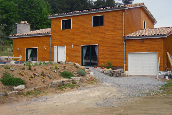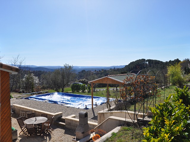 15 minutes au Sud d'Aubenas, sur les hauteurs d’un village médiéval, une maison récente en ossature et bardage bois de 150 m2 habitables exposée sud avec une vue jusqu'au Mont Ventoux avec 3993 m2 de terrain et une piscine de 8 m x 4,5 m avec terrasse couverte. Elle comprend une grande pièce de vie ouverte avec coin cuisine, 3 chambres, 2 salles d'eau avec W.C., un W.C. séparé, un dressing. Garage de 22,5 m2. Chauffage central fuel (chaudière à condensation) avec plancher chauffant au RDC et radiateurs à l’étage par chaudière à condensation (fuel) et chauffe-eau solaire. Fosse septique. ADSL.
