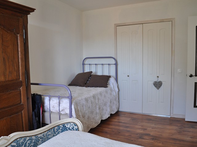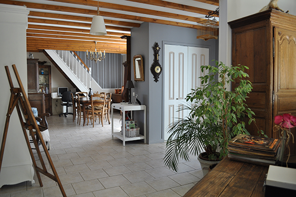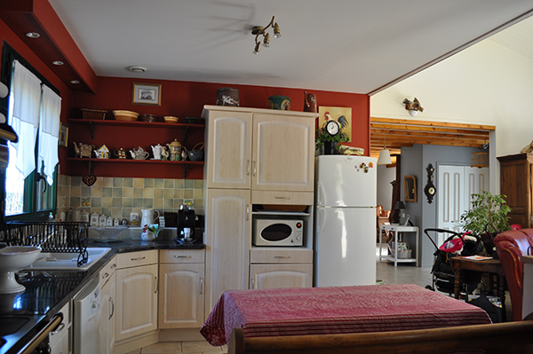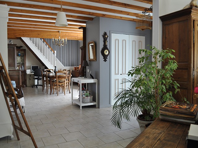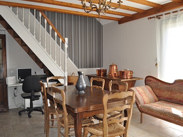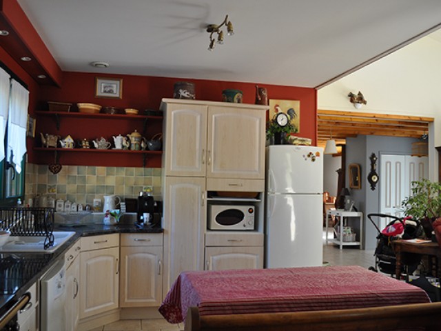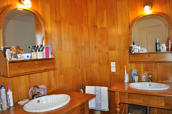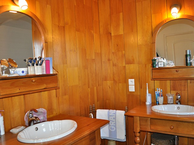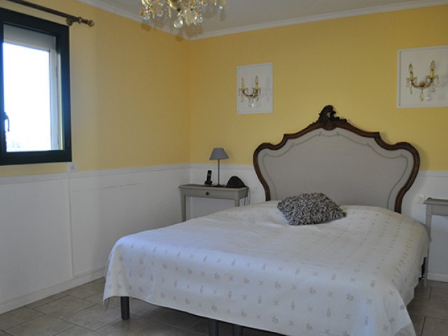 L’entrée, au rez-de-chaussée, se fait dans une pièce de vie ouverte avec une cuisine équipée de 16 m2, un salon de 25 m2 (possibilité d’installer une cheminée, conduit et manteau en bois sculpté déjà existants), une salle à manger de 20,57 m2. Deux grandes baies vitrées en aluminium permettent une sortie sur le jardin et la piscine. Toujours au rez-de-chaussée, nous trouvons une chambre parentale de 18 m2 avec salle d’eau privative de 9,8 m2 avec deux vasques, un WC et une douche à jets et un W.C. séparé. À l’étage, par un escalier menuisé, ont été crées une chambre de 16,9 m2 avec en annexe un dressing de 7 m2 et une troisième chambre de 12,7 m2, une salle d’eau de 9,8 m2 avec douche à jets, vasque de lavabo et WC. Un parquet flottant recouvre le sol de tout le premier étage.