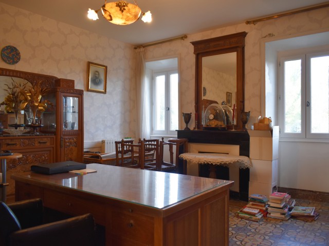 Celui-ci se compose d'un séjour de 24,1 m2, d'une salle à manger de 22,7 m2, d'un salon de 17,8 m2 d'une cuisine de 15,9 m2 et d'une arrière-cuisine de 10,5 m2. Au même niveau, distribuées par un couloir, se trouvent 4 chambres de 11,6 m2, 11,7 m2, 10 m2 et 18,4 m2, une salle d'eau de 5,5 m2 et un W.C. séparé.