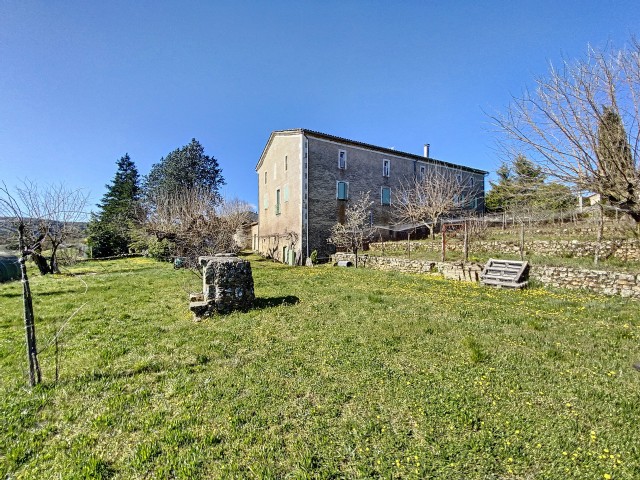 Entre LARGENTIERE et les VANS, un Mas ardéchois du 19ème rénové de 628 m2 avec 8000 m2 de surface cadastrale avec piscine hors-sol, composé de deux bâtiments reliés par une terrasse couverte et une cour fermée : la bâtisse principale de 395,3 m2 habitables élevée sur 7 caves, comprend un premier logement de 164 m2 sur un niveau (séjour, salon, salle à manger, cuisine, 4 chambres, salle d'eau, W.C.) et un second logement de 231,30 m2 sur 2 niveaux (séjour-cuisine, salon, 3 chambres avec salles de bain et W.C. séparés, 2 suites de 2 chambres avec salles de bains et W.C. séparé, lingerie, buanderie, pièce rangement) ; la dépendance élevée sur caves est composée d'un logement de 69,27 m2 sur 2 niveaux (séjour-cuisine, deux chambres, salle de bain, W.C.). Chauffage central au fuel. Fosse septique et phyto-épuration. Commerces à 5 minutes.