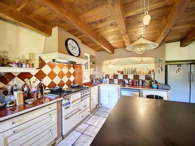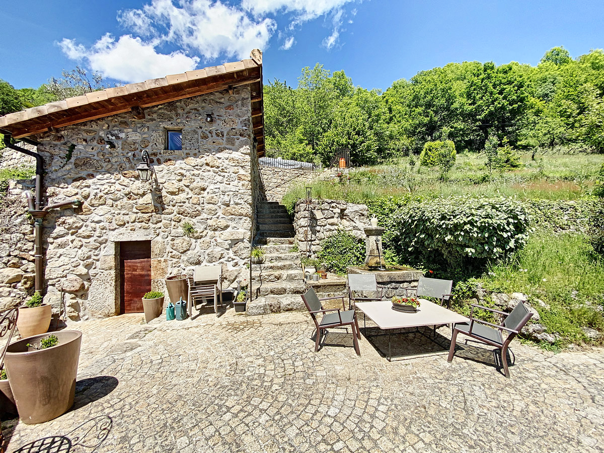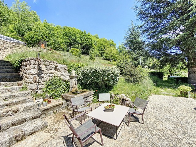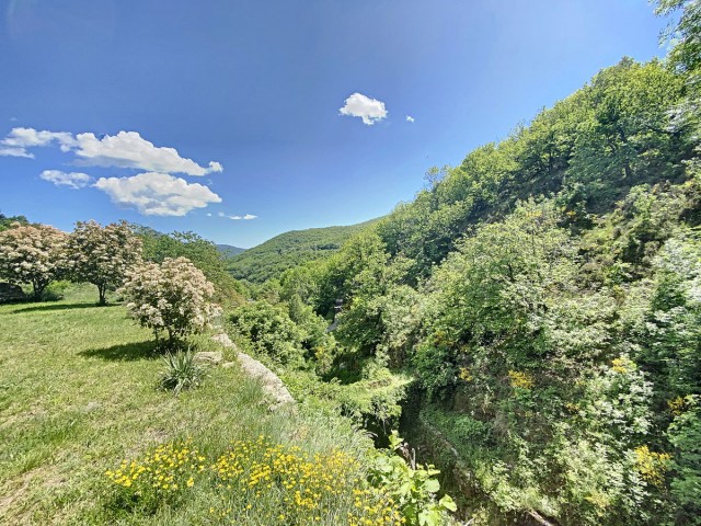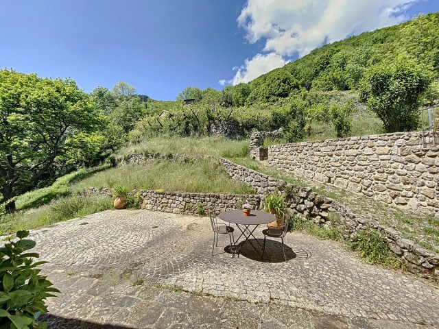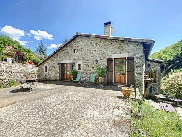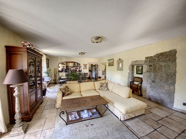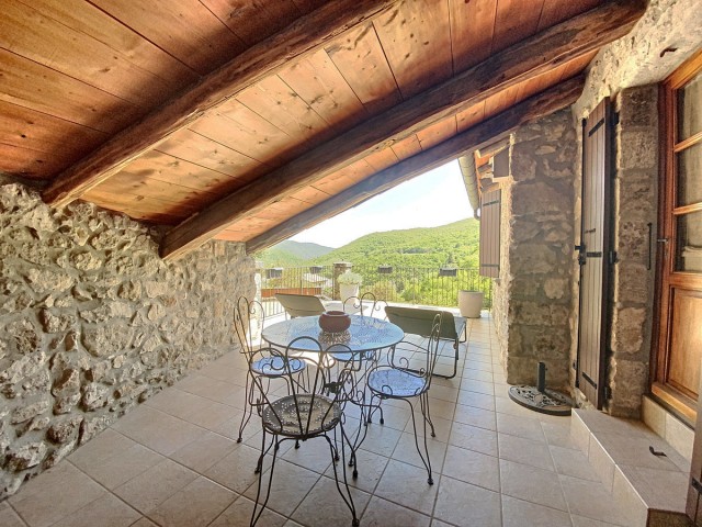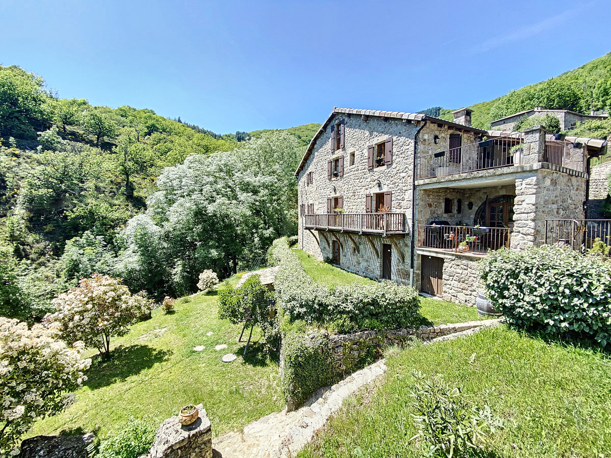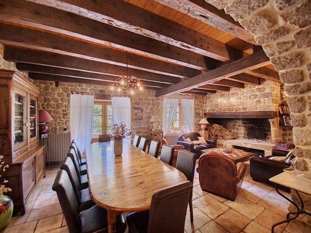 Ardèche méridionale, dans le Parc Régional des Monts d’Ardèche : une splendide demeure de caractère rénovée de 330 m2 habitables avec 2,45 ha de terrain en partie constructible source permanente, piscine avec plage et vue dominante, et ruisseau en bordure. Majestueux séjour-salon avec cheminée et bar, grande salle à manger et cuisine équipée, 6 chambres, 5 salles d’eau, une salle de bains, terrasses, caves, buanderie, petite dépendance en pierre. Garage pour 2 véhicules. Jeu de boules. Chauffage central, fosse septique, ADSL. Commerces dans le village. Baignades dans une rivière limpide.