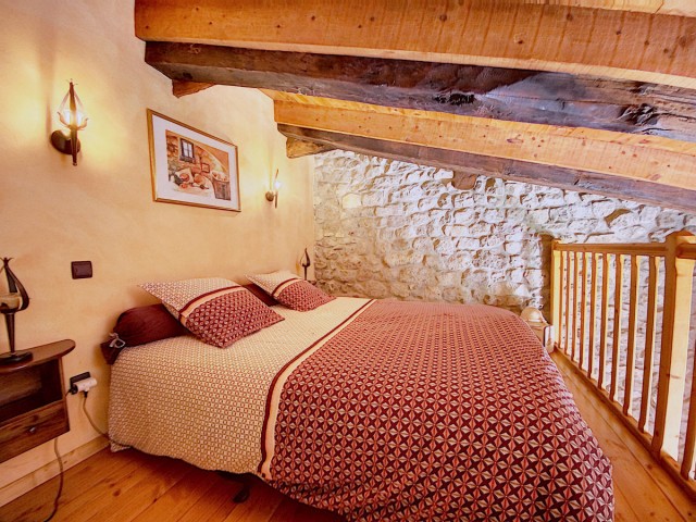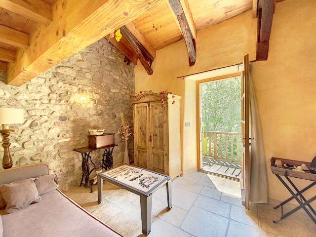 Au second étage, une belle chambre mansardée de 22,42 m2 avec une jolie vue sur la vallée et une salle d’eau avec W.C..