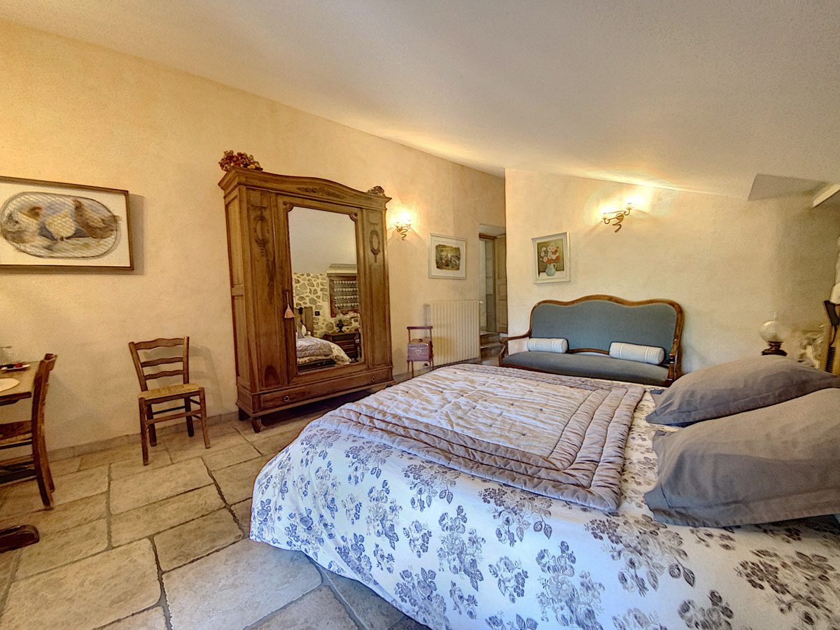 Au premier étage un large palier permet de ressortir sur une autre terrasse intime, et distribue 5 chambres :