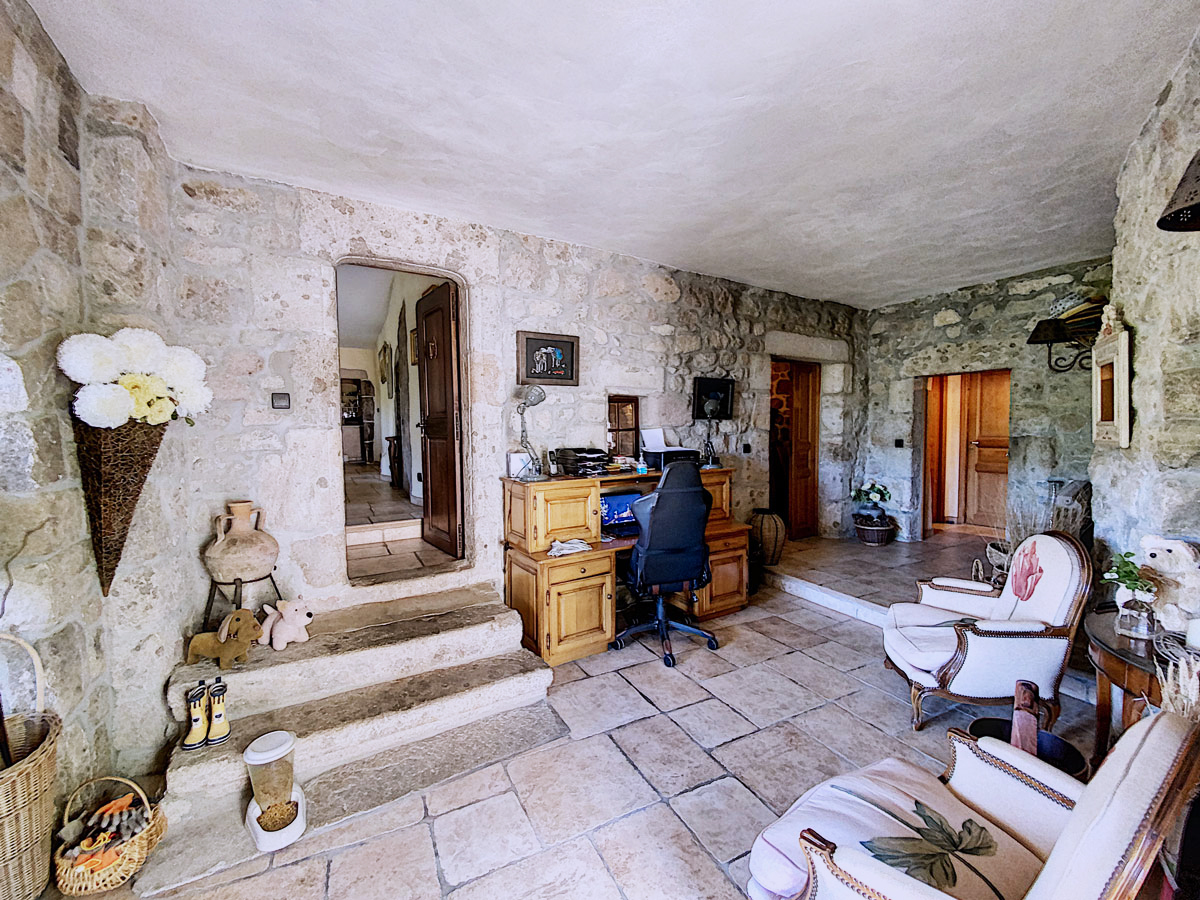 De retour dans le grand salon, un escalier dérobé descend vers deux belles caves voutées rénovées, dont l’une pourrait accueillir un espace jacuzzi-sauna.