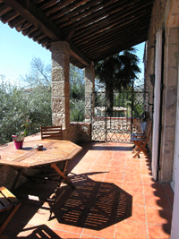 Un grand portail en fer automatisé s’ouvre sur l’allée d’accès à la propriété. Sur notre gauche s’étend un jardin arboré d’arbres centenaires. Arrosage intégré.