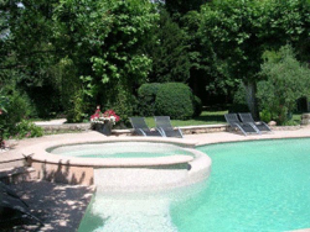 Dans les environs d’Aubenas, une demeure de charme rénovée du 11ème siècle sur 3 niveaux de 343 m2, 10 pièces (5 chambres, 4 salles de bains), dont une splendide chapelle romane, terrasses, 2500 m2 de jardin arboré et clos, piscine Diffazur avec spa et confortable dépendance de 66 m2 avec séjour et coin cuisine, chambre, salle d’eau, W.C. et grande terrasse couverte, une seconde dépendance de 36 m2 avec chambre, salon et salle d’eau. Chauffage central. Cheminée. Tout à l’égout. Forage et eau de ville. Possibilité chambres d’hôtes.