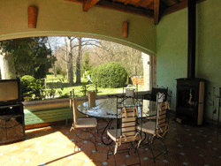 L’extension comprend en rez-de-jardin, un séjour de 45 m2 avec une très belle charpente apparente, un coin cuisine intégré avec bar en Noyer, une chambre de 12,5 m2, une salle d’eau et un W.C. séparé.