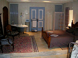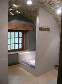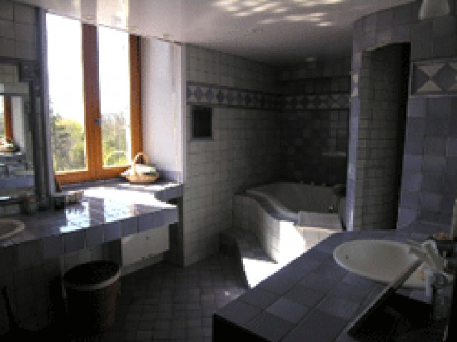 Cette pièce elle-même permet de rejoindre une seconde chambre de 30 m2 avec douche à l’italienne, lavabo et WC, ayant aussi une entrée indépendante.