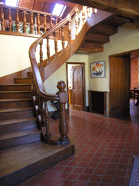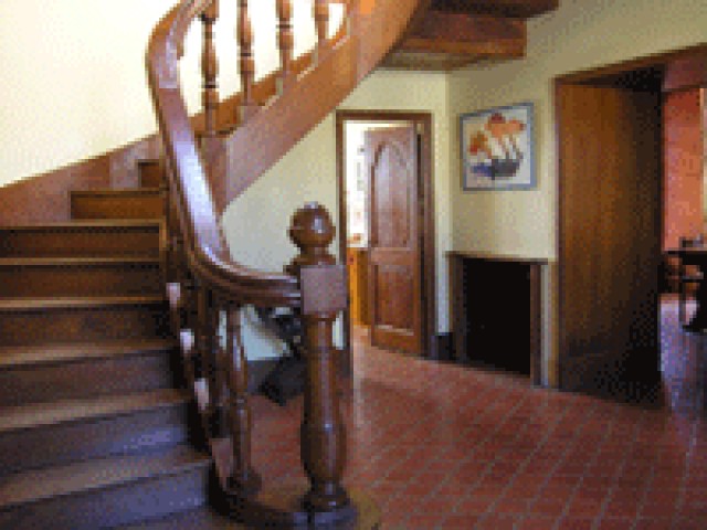 Le hall donne accès à la chapelle rénovée composée d’un salon de 26 m2 avec sol en parquet de chêne à lames larges. Les vitraux sont toujours existants, la toiture en demi-cercle a été entièrement refaite. Un escalier en pierre de taille tournant en 1/4 de tour permet de rejoindre le rez-de-chaussée offrant une magnifique pièce de 32 m2, très sereine comme le voulait la première destination des lieux convertie en chambre avec baignoire, lavabo et WC séparé.