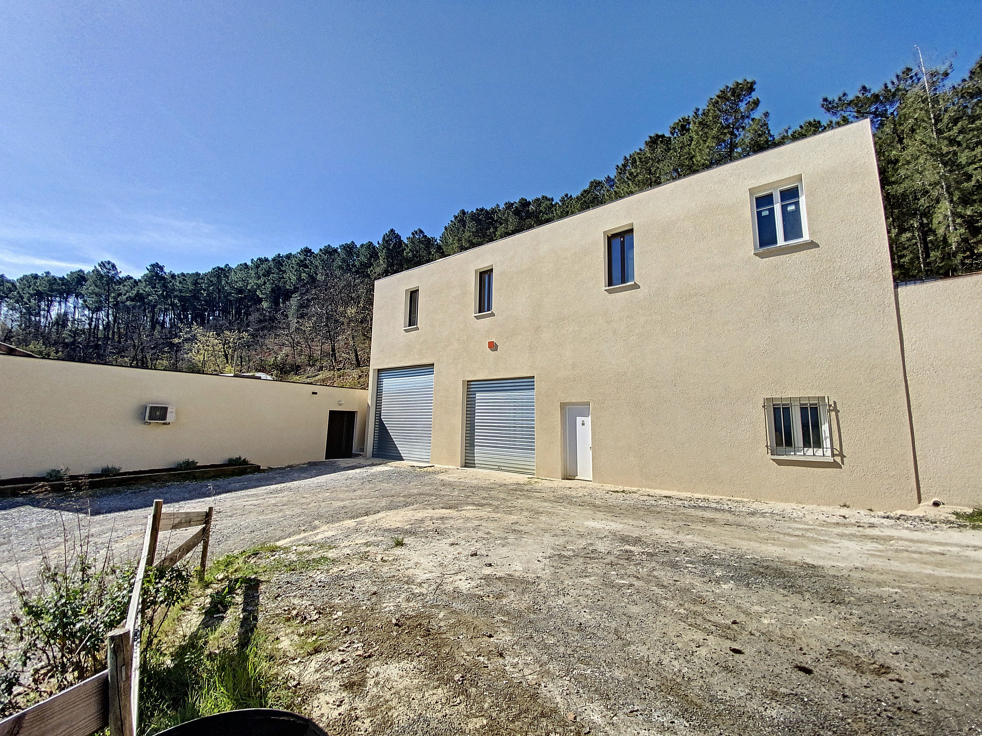 Le garage construit un peu plus haut sur le terrain, est élevée sur un premier niveau de 150 m2 pourvu de 2 grandes portes permettant le passage d'un camping-car. Le second niveau, accessible par le terrain, offre également une surface de150 m2 accueillir également des véhicules, la dalle étant prévue pour.