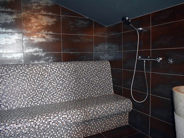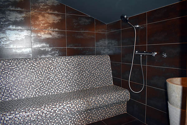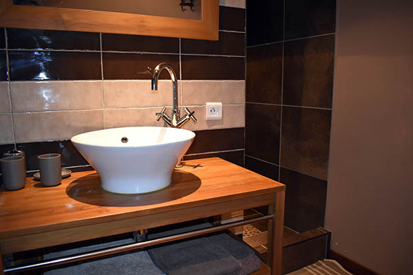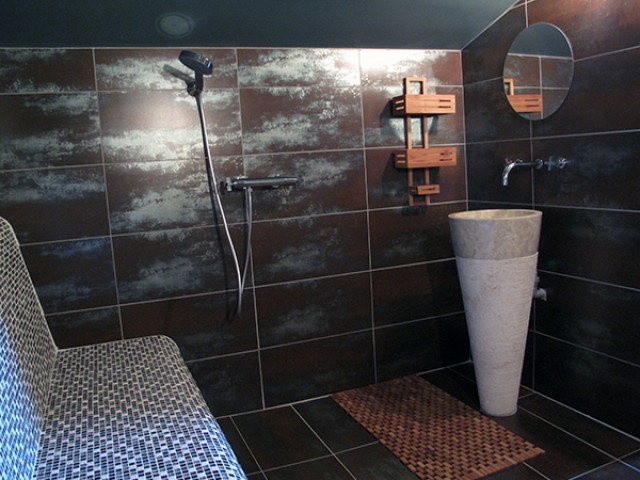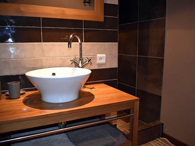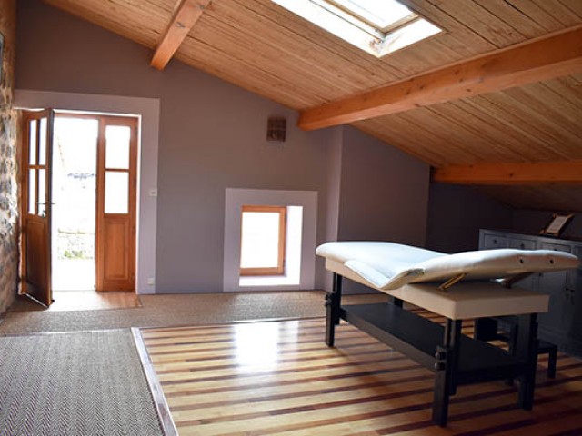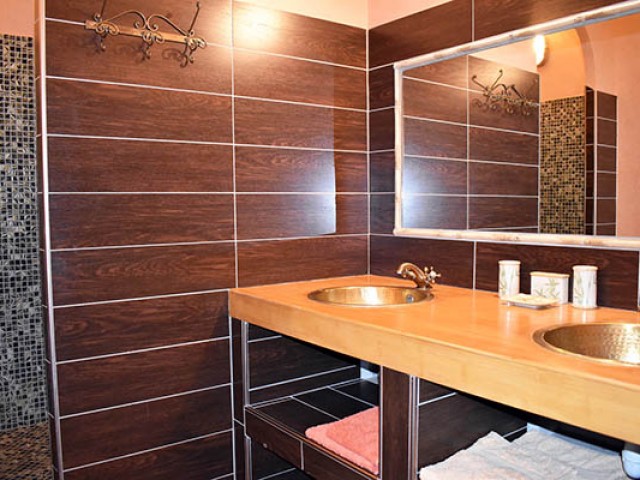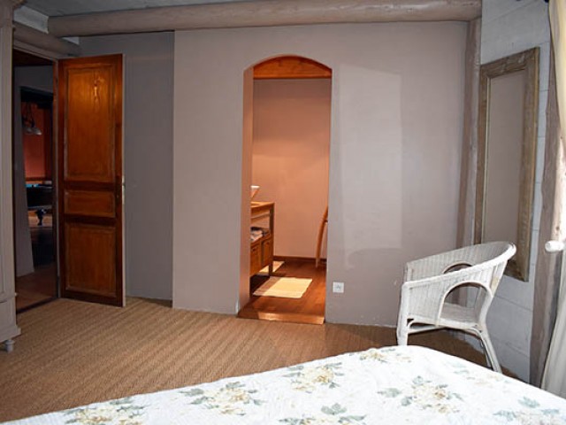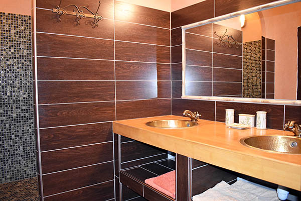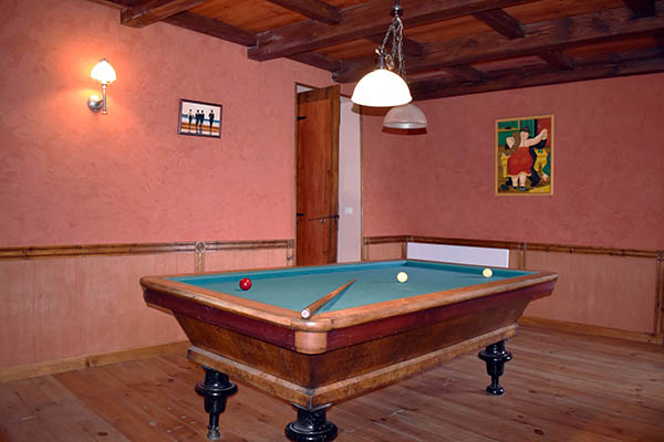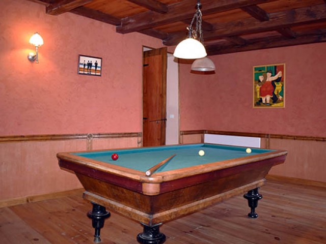 Celui-ci distribue une grande salle à manger de 21,70 m2 avec une cheminée décorative et en face la cuisine équipée avec un ilot central qui communique avec une véranda en fer forgé et la buanderie / lingerie. Au même niveau se trouvent également, deux chambres de 11 m2 et 16 m2 avec placards, la seconde avec une salle d'eau privative avec W.C. (douche à l'italienne) de 6,45 m2 ; quelques marches plus haut, une salle de bains de 10 m2, un W.C. et un salon avec une cheminée équipée d'un insert et d'un système Home Cinema. Au premier étage, se situent une chambre de 15,56 m2 avec placard et en annexe une salle d'eau avec W.C., une salle de billard de 23 m2 avec parquet au sol, une salle de massage en partie mansardée de 33,90 m2 avec une petite terrasse, une chambre de 28,20 m2 également mansardée, une salle d'eau de 6,82 m2 prête à être équipée en hammam.