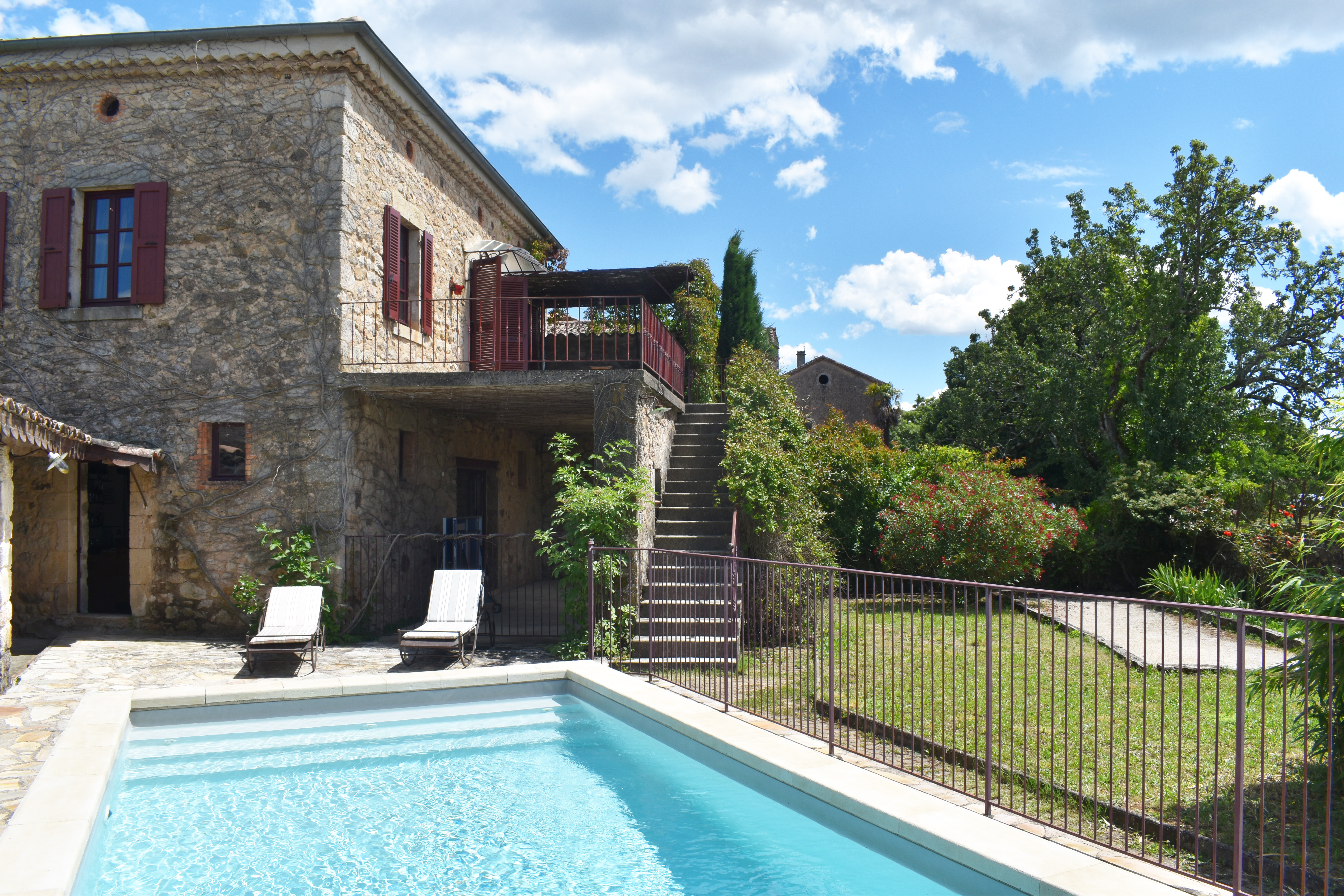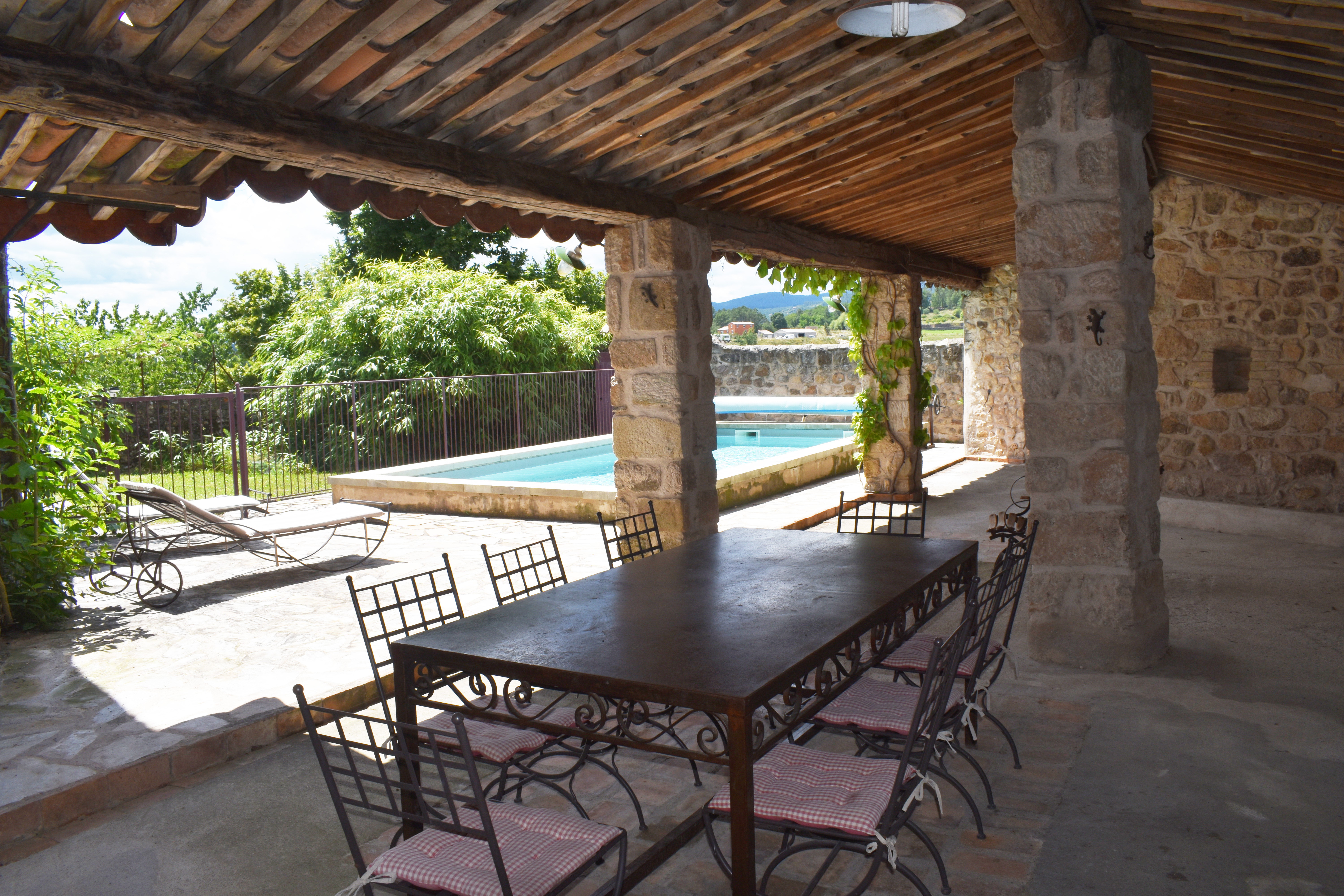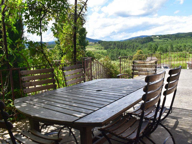 À 10 minutes de JOYEUSE, dans un petit hameau typique, avec une vue dominante au Sud-Ouest sur les environs, une maison bourgeoise de 380 m2 habitables et un jardin clos d'environ 400 m2 avec une piscine, trois terrasses dont une grande terrasse couverte. La demeure se compose d'un salon avec cheminée (équipé Home Cinema), d'une salle à manger, d'une cuisine équipée, d'une véranda en fer forgé, d'une buanderie/lingerie, de 5 chambres deux avec salles d'eau et W.C., deux salles de bains dont une avec W.C., une salle d'eau (poss. Hammam), deux W.C. séparés, une salle de billard, une salle de massage, une salle de réception de 69,4 m2 avec bar antique, une cuisine professionnelle de 18 m2 avec arrière-cuisine, et une cave à vin. Chauffage central au fuel. Eau chaude solaire. Citerne d'eaux pluviales.