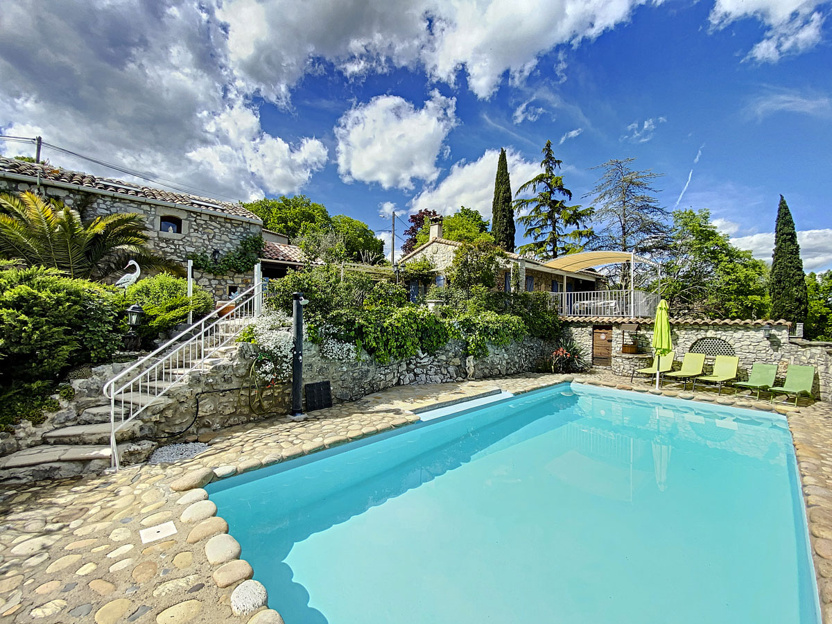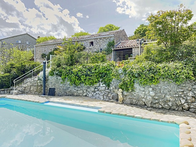 En Ardèche méridionale, dans un village typique, deux maisons en pierre de pays : l’une de 61,5 m2 habitables, construite en pierres dans les années 90 et l’autre de 60 m2, ancienne grange rénovée à usage de gîte, avec une piscine et 2280 m2 de jardin arboré, clôturé. et constructible. Parking, garage, Chauffage central au gaz, radiateurs électriques et poêle à pellets.