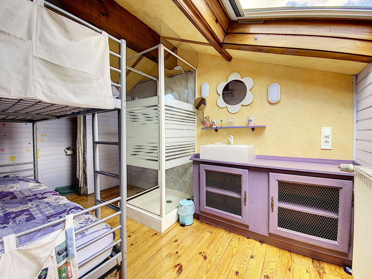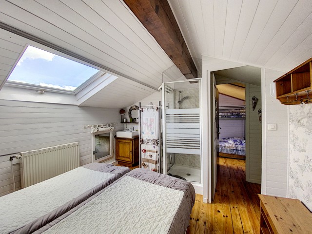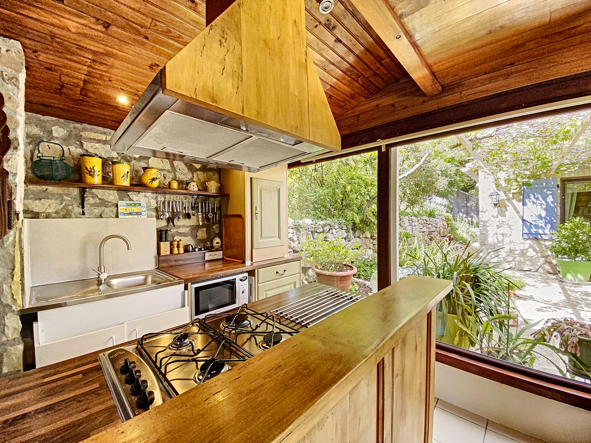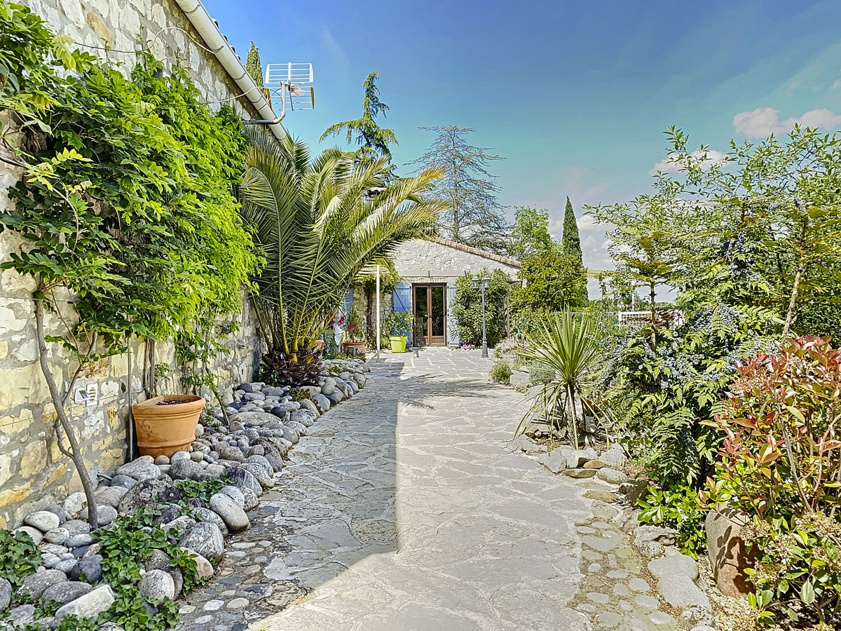 Dans un petit village au charme méridional, proche des commodités et des Gorges de l’Ardèche, la première maison a été construite dans les années 90 doublée en pierre de pays. Elle est composée d’une pièce de vie ouverte de 40.29 m2 équipée d’un poêle à pellets, d’un espace salon, salle à manger ainsi que d’une cuisine intégrée et équipée. Le sol en terre donne une touche traditionnelle à la pièce. Un dégagement distribue un bureau de 7.8 m2 et une chambre de 8.3 m2 ainsi qu’une salle d’eau de 3.02 m2 avec une douche à l’italienne et un WC séparé.