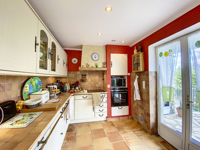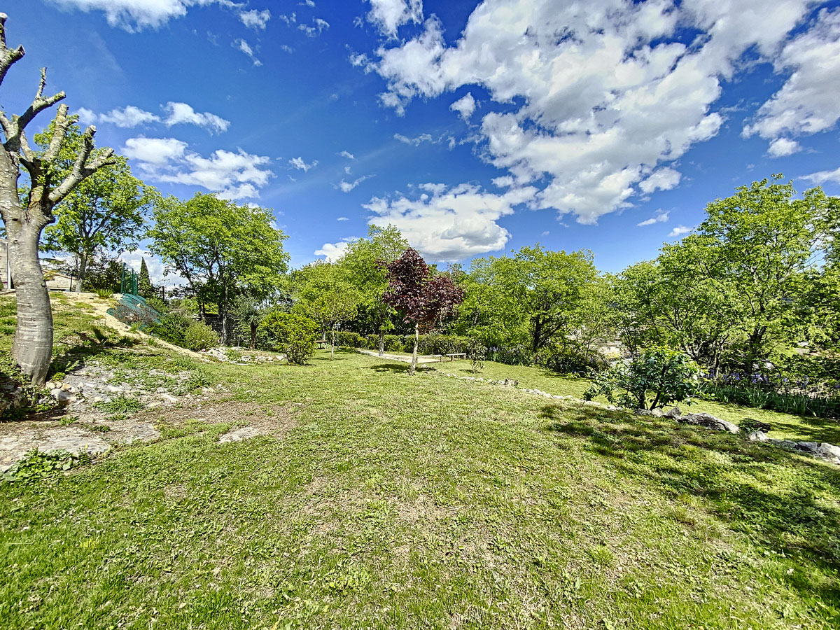 L’espace extérieur est arboré avec des arbres fruitiers, plusieurs espaces terrasses ainsi qu’une piscine de 9,5 m x 4,5 m permet de profiter en toute intimité du jardin. Un réservoir d’eaux pluviales de 6 m3 pourvoit en eau d’arrosage.