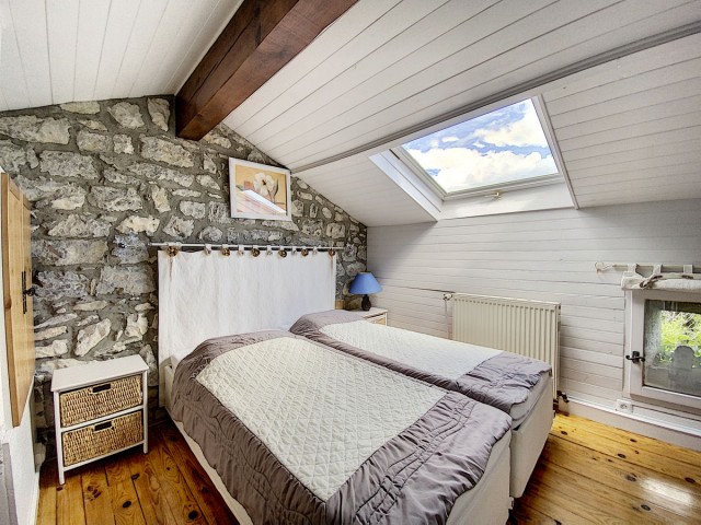 La dépendance (ou gîte) est une ancienne grange rénovée où les murs en pierres apparentes ont été conservés. Au rez-de-chaussée, la maison s'ouvre sur une pièce de vie de 27 m2 comprenant une cuisine aménagée, une salle à manger et un salon. Une mezzanine de 8 m2 surplombe cette pièce. Une salle d’eau avec WC de 1,36 m2 et un garage de 21 m2 se situent également au rez-de-chaussée. Au premier étage, deux chambres de 11 m2 et 9,36 m2 dans chacune desquels ont été aménagé une douche et un WC.