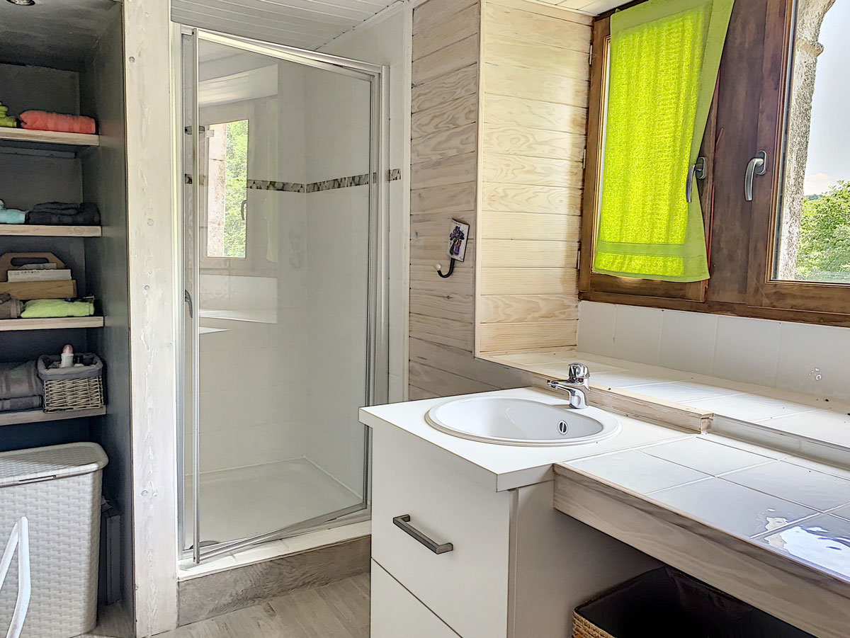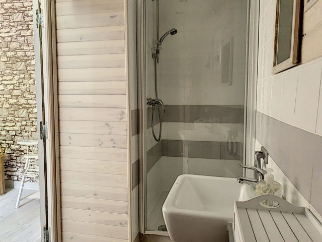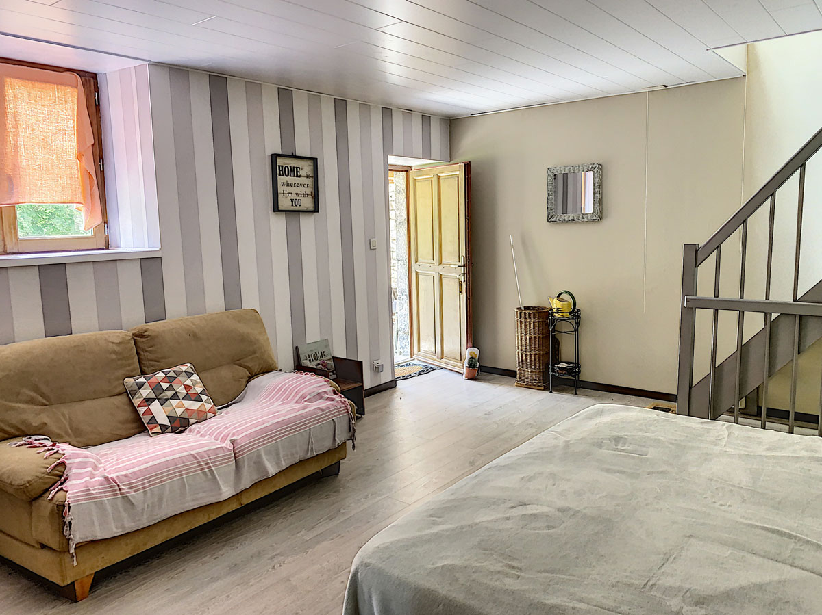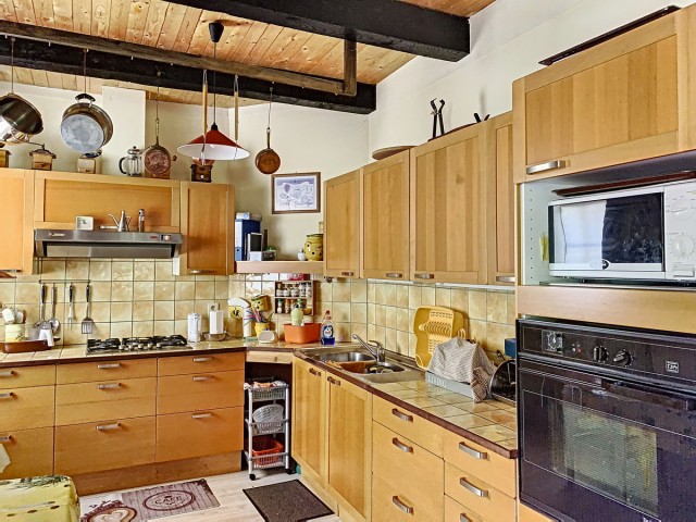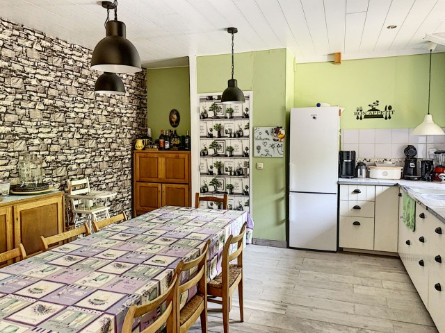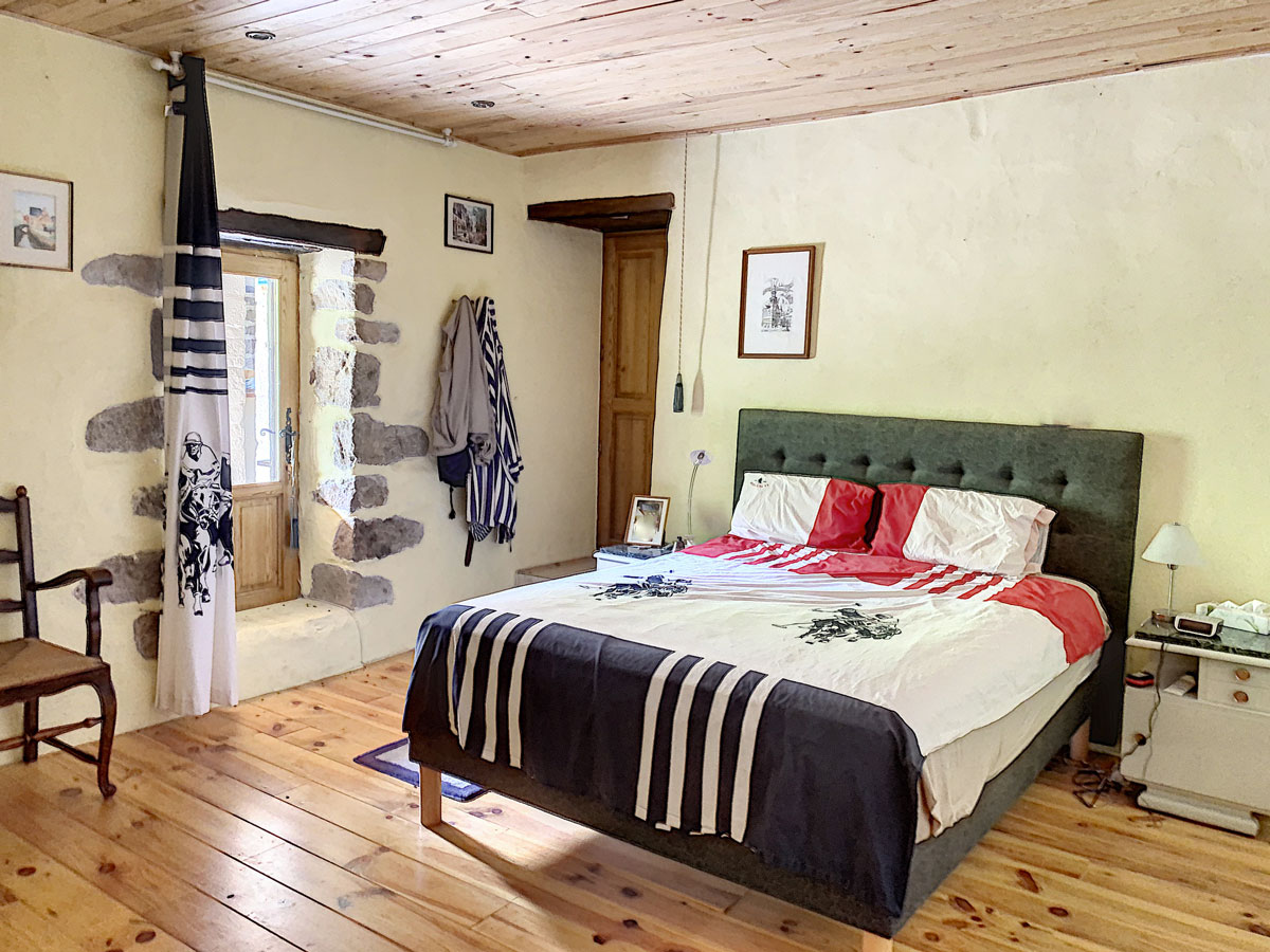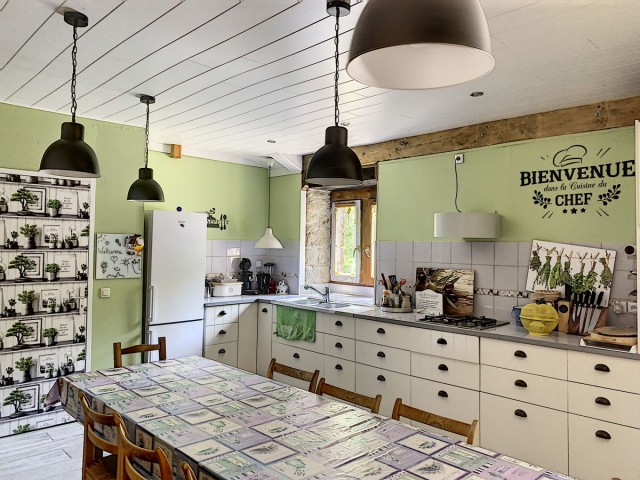 A l'écart du village avec un terrain relativement plat de 1,83 ha, cette grande demeure, ancienne ferme rénovée s'articule autour d'une cour intérieure dallée. La piscine récente, de 9,5 m x 4 m profite d'un emplacement ensoleillé. En rez-de-chaussée, côté piscine se trouvent, une pièce de 17,77 m2 carrelée comprenant le local technique de la piscine et une chambre de 22,68 m2 en mezzanine au-dessus et une salle de jeux ou de réunion de 44 m2 avec combles au-dessus. Toujours au rez-de-chaussée de la demeure, se situent également 3 caves voûtées et un atelier. Par la cour intérieure, nous découvrons une chambre d'amis en rez-de-chaussée 20 m2 avec une salle de bains avec W.C. en annexe et un espace buanderie. A ce niveau, le premier logement de 74 m2 s'ouvre sur une salle à manger de 26 m2 avec coin-cuisine et un escalier vers une spacieuse chambre de 26 m2 avec sortie sur la terrasse couverte au premier avec en annexe une salle d'eau de 6,95 m2 et un W.C.. Un escalier meunier permet de rejoindre un dortoir mansardé de 15 m2 (hauteur inférieure à 1,80 m). Depuis la terrasse couverte, le second logement de 88 m2 s'ouvre sur une entrée de 9 m2 vers le séjour de 29,6 m2 avec une belle hauteur sous plafond et un poêle à bois, et dans le prolongement une cuisine ouverte de 12,25 m2. Au même niveau se trouvent, une chambre de 21 m2 avec une grande penderie murale, une salle d'eau de 7 m2, un W.C. et un espace bureau de 7 m2.