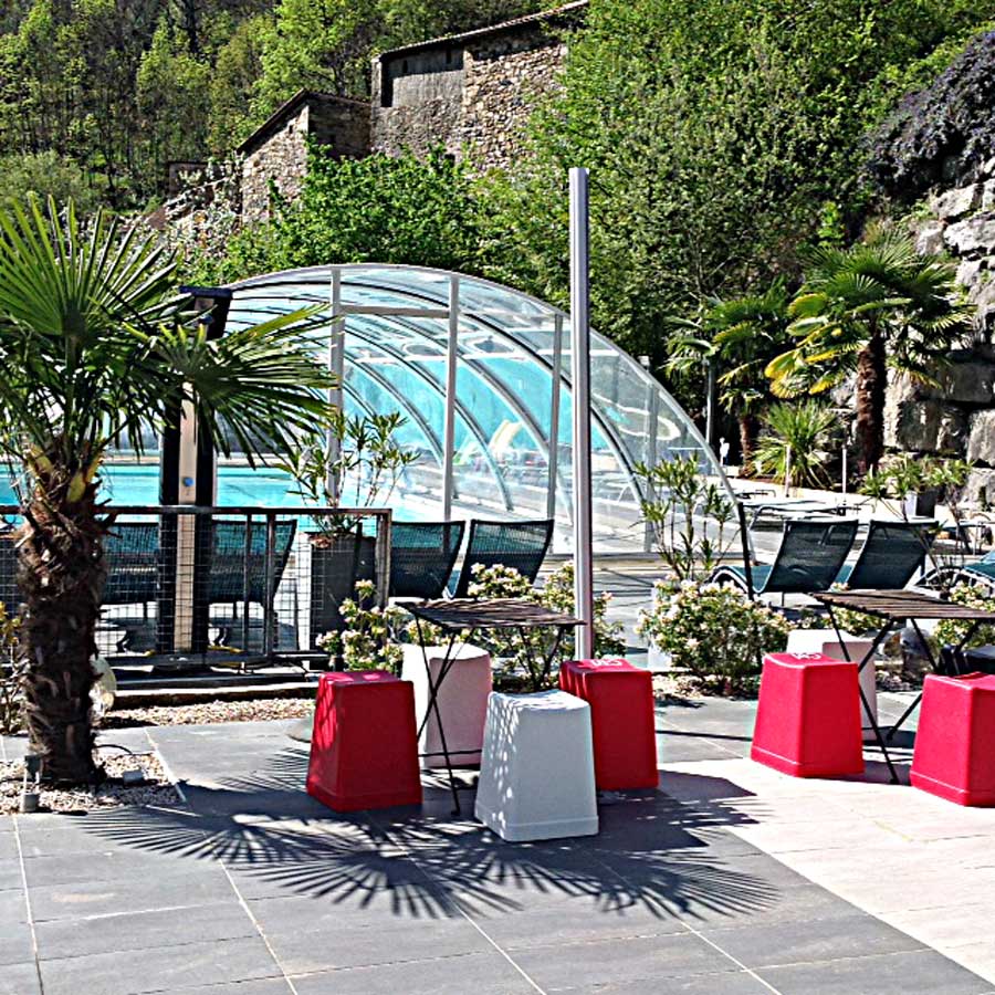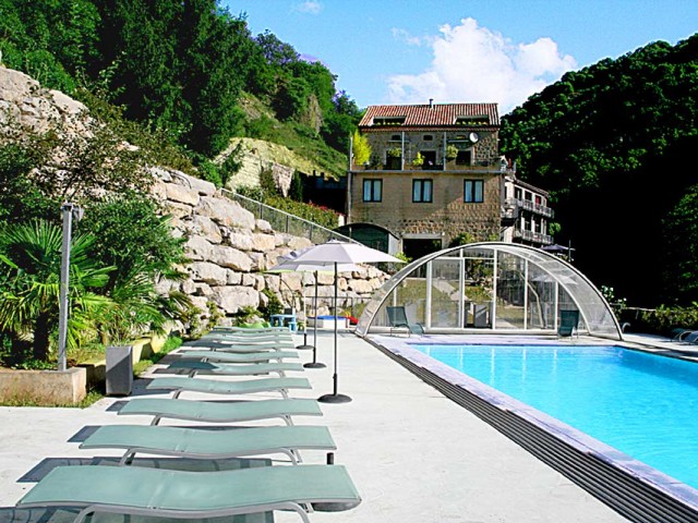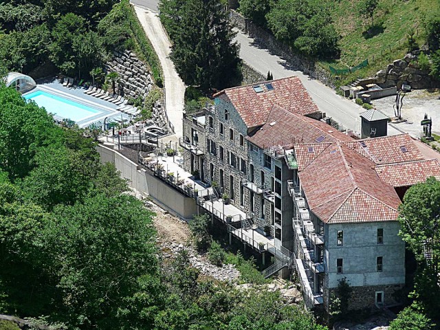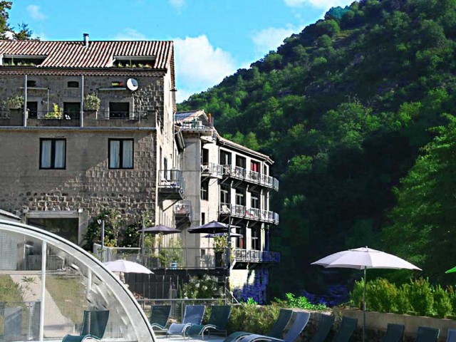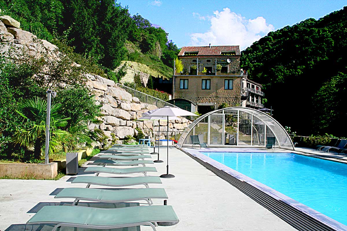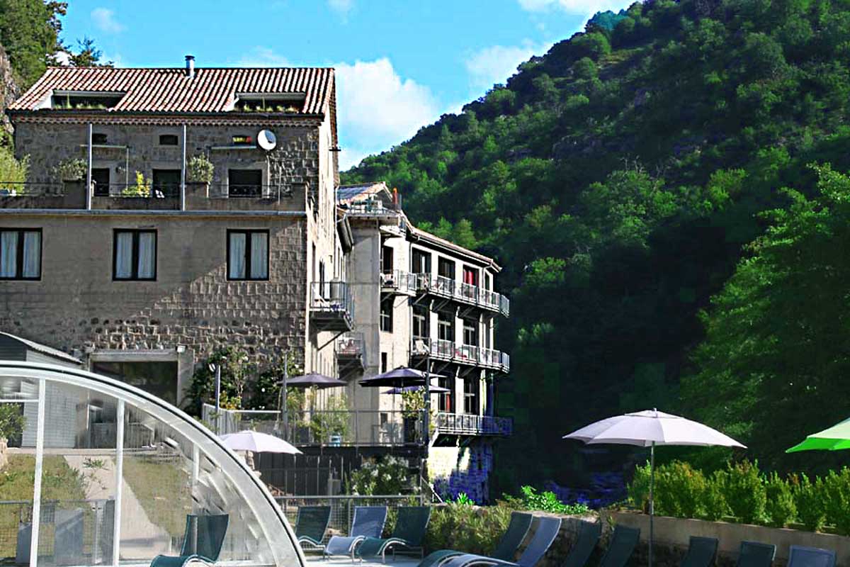 Cette demeure exceptionnelle,en bordure de rivière, entre le village touristique d'Antraigues et la ville thermale de Vals-les-Bains, ancien moulinage de soie avec maison de Maître, a été rénovée sous la direction d'un architecte pour proposer dans un environnement privilégié, un lieu de vacances familiales (lofts de 2 à 12 personnes) mais aussi pour de l'accueil évènementiel (séminaires, groupes sportifs, mariages…).