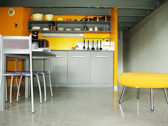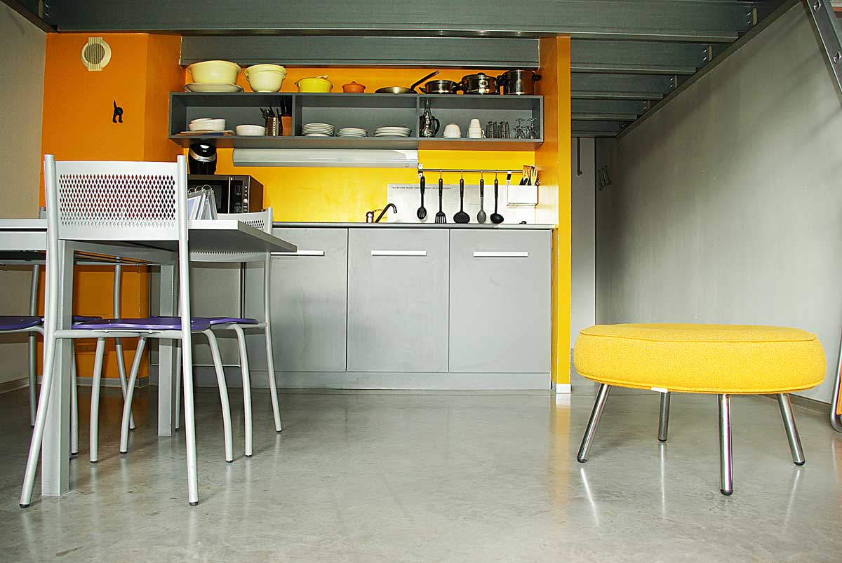 Au niveau de l'accueil, un escalier descend vers 5 autres lofts de 61 m2, 54 m2, 59 m2, 52,5 m2, 63,5 m2 dont 4 avec balcon sur la rivière.