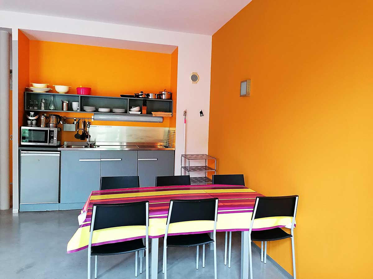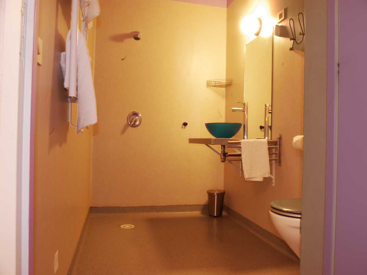 Au niveau 2 se situent les vestiaires (actuellement aménagés en 2 chambres dortoir, en appoint pour les groupes) pour un total de 28 m2.